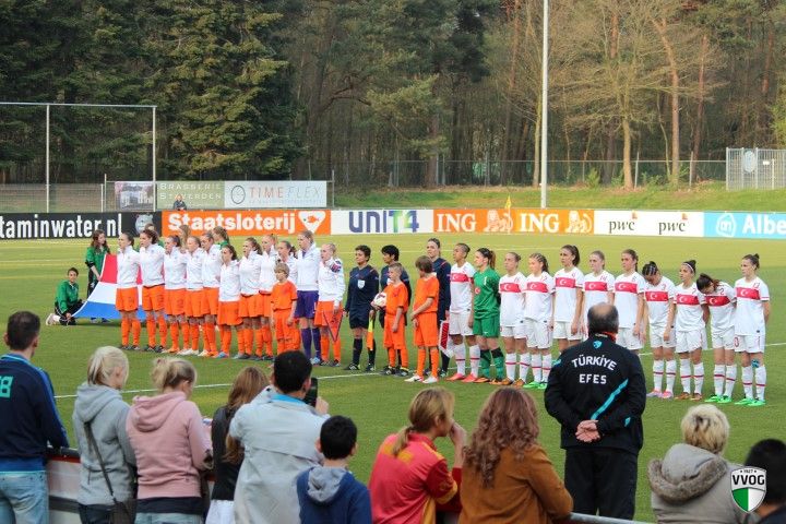 De Nederlandse vrouwen hebben hun eerste wedstrijd op een zeer sfeervol sportpark De Strokel met 2-0 gewonnen van Turkije