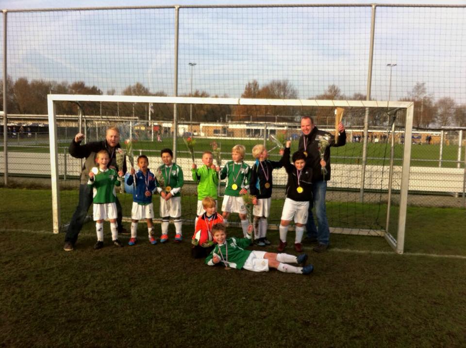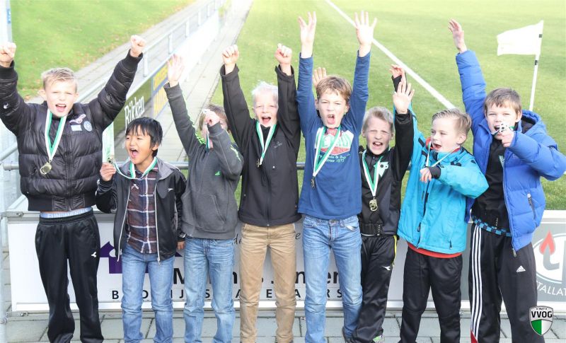 De jongens van de E6 verloren vorige week de topper tegen Sparta Nijkerk. Hierdoor kwamen beide teams gelijk in punten en ook het doelsaldo was gelijk. Spanning voor de laatste wedstrijd. Beide teams wonnen hun laatste wedstrijd. Sparta Nijkerk met 2-0 en VVOG met 4-1. Hierdoor zijn beide teams geeindigd met 10 overwinningen en 1 verliespartij. Het doelsaldo van VVOG 1 puntje beter en dat was doorslaggevend voor de titel. Gefeliciteerd !