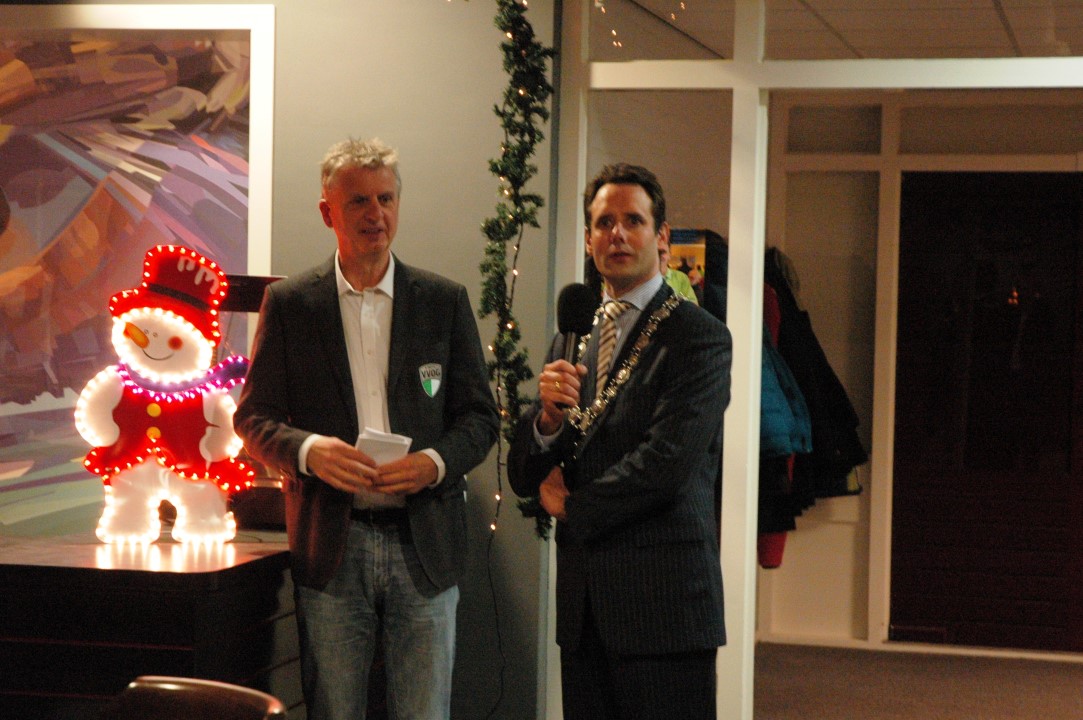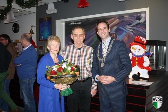Wethouder Christianne van der Wal was er, maar dat kon. Wethouders komen veelal even bij een nieuwjaarsreceptie. Burgemeester Harm Jan van Schaik kwam. Nou dat was al wel wat bijzonder. Zeker toen hij zei met een bijzondere opdracht naar de Strokel te zijn gekomen. Hij was namelijk op zoek naar de fotograaf waarop Jan nog naar Ton Pors wees. Nee, Jan moest naar voren komen en toen familie en bekenden naar voren traden viel het kwartje voor Jan al bleef hij wel totaal verbouwereerd dat hij een Koninklijke onderscheiding kreeg voor al zijn vrijwiligerswerk voor onder meer VVOG. Het zij Jan zijn gezin, familie leden en vrienden van harte gegund.
