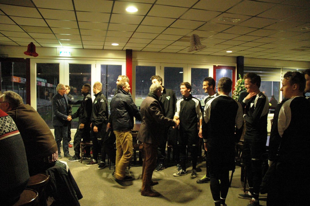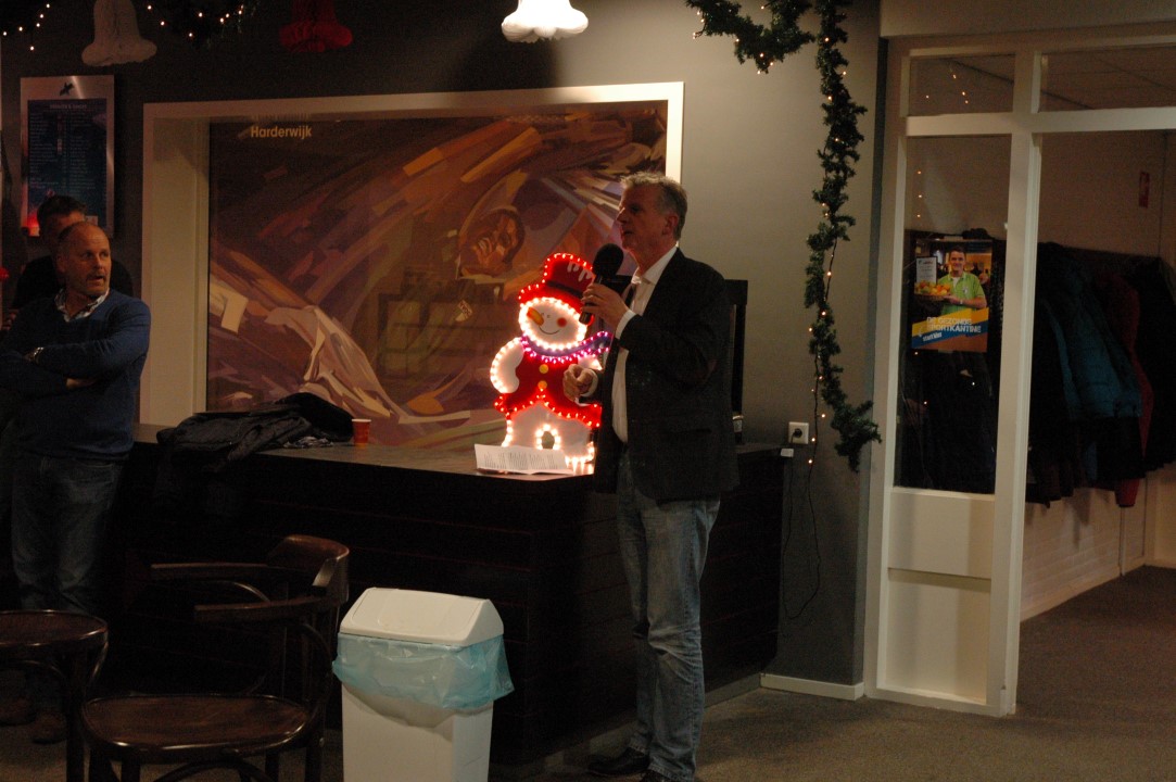 Het was ook de maidenspeech voor Laurens de Kleine als kersverse voorzitter van VVOG. In zijn toespraak brak hij een lans om door samenwerking tussen Zwart Wit '63 en Hierden talentvolle voetballers voor Harderwijk te behouden. VVOG moet volgens De Kleine toonaangevend worden voor de jeugd en daarvoor is binding met Harderwijkse ondernemers nog meer een missie. De eerste tekenen van het jeugdbeleid zag hij al terug in de kampioensteams van de afgelopen periode en dat smaakt naar meer. Laurens memoreerde nog even de Houdini act van VVOG iconen Marco Roelofsen en Henri Brink waardoor de mannen van de hoofdmacht het hoofdklasseschap hebben behouden. Een prestatie van de bovenste plank en die goede lijn zet zich nu voort met een keurige 4e plek onder aanvoering van Ed Engelkes en zijn staf. In een zelfde adem roemde hij ook VVOG zondag 2 dat nu fier bovenaan staat. Hij prees de inzet van meer dan 300 vrijwilligers die zorgen dat VVOG ook echt een familieclub is geworden met een prachtige accommodatie. Tegelijkertijd vragen al die ambities meer geld en zal er ook meer van de vrijwiligers gevraagd worden om te zorgen dat ONS VVOG weer die toonaangevende club van weleer wordt binnen een financieel gezonde omgeving. Het jaar 2015 wordt voor VVOG dan ook een jaar dat barst van de activiteiten om die weg omhoog verder in te slaan.