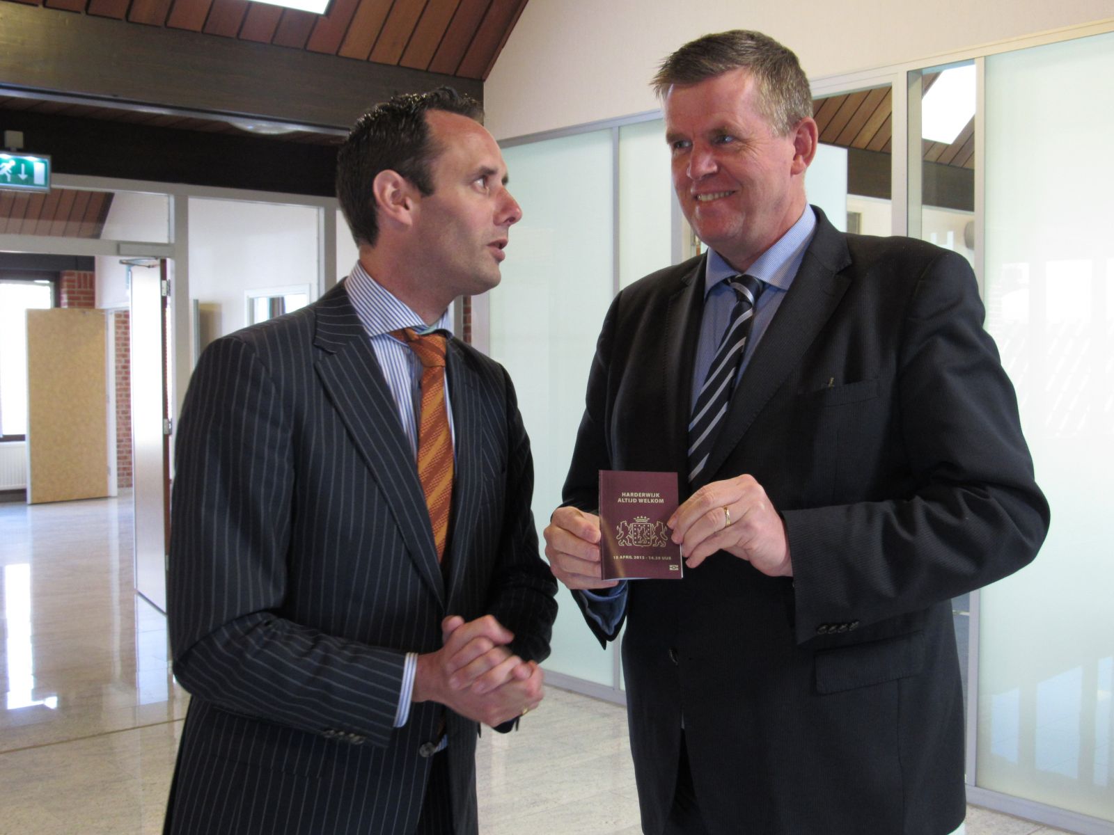 Burgemeester Harm Jan van Schaik heeft vanmorgen officieel het Harderwijker Paspoort uitgedeeld aan burgemeester Baars van Ermelo