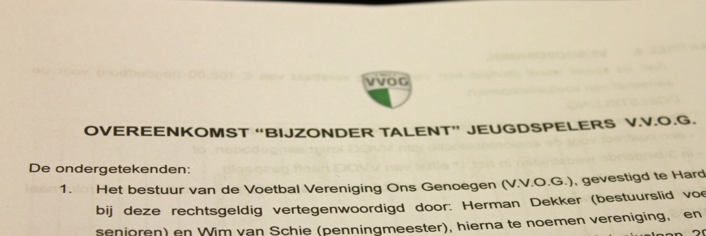 Bestuurslid Voetbalzaken Herman Dekker daarover: "Bijzonder Talent"-contract is een nieuw contract dat wij bij VVOG hebben geintroduceerd om het belang dat wij hechten aan de doorstroming van de eigen jeugd naar de top van ons prestatief voetbal te benadrukken. Dit contract zal zeer selectief worden aangeboden aan jeugdspelers waarin wij als VVOG grote mogelijkheden voor de toekomst zien. Aan de ontwikkeling van de speler zal extra aandacht worden besteed.