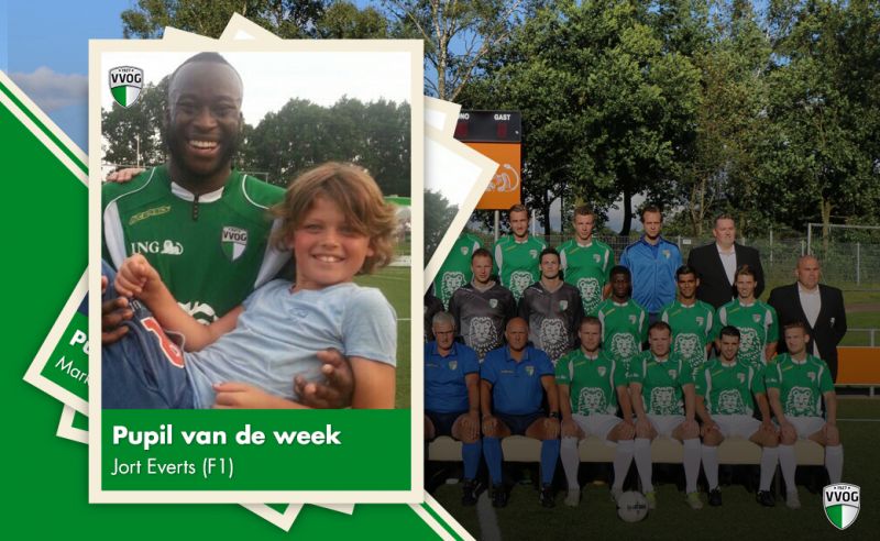 Jort is groot fan van Feyenoord. Hij gaat ook regelmatig naar De kuip toe om een wedstrijd te zien. Vorig jaar mocht hij zelfs hand in hand met een van zijn Feyenoord idolen het veld oplopen. Jort speelt in de F1 rechtsbuiten. Hij wil het liefst in de aanval spelen. Jort vind het bij VVOG heel gezellig en weet de weg naar de broodjes kroket aardig te vinden. Op zaterdag gaat hij als het 1e elftal thuis speelt altijd kijken met zijn vriendjes. Jort zijn favoriete speler is Toornstra en bij VVOG is dat Nyang. In zijn vrije tijd speelt hij het liefst buiten met zijn vriendjes. Zijn favoriete tv programma/zender is Fox Sports. En als je vraagt aan Jort wat hij later wil worden dan zegt hij natuurlijk profvoetballer. Jort voorspelt dat VVOG wint met 3-1. Doelpunten worden gescoord door Tim Brockhoff, Rik Boersma en Pernelly Biya.