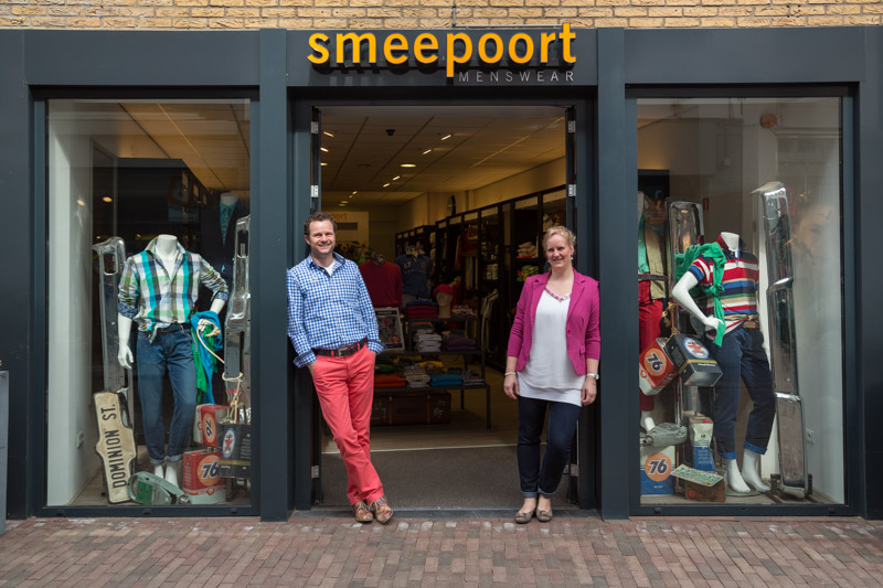 Ondanks het feit dat mensen ook kleding bestellen via het internet, blijven bij Smeepoort menswear (www.smeepoortmannemode) de klanten in toenemende mate toestromen. Daarbij moet worden aangetekend, dat de naam ‘Smeepoort’ uitsluitend de historie van het bedrijf aangeeft, dat 16 jaar geleden aan de gelijknamige straat is begonnen. Nu is de fraaie winkel gevestigd aan de Donkerstraat 19. Vele mannen van vrijwel iedere leeftijd weten de winkel te vinden. Ze voelen zich thuis en op hun gemak. De persoonlijke benadering word enorm gewaardeerd. Dat laatste staat hoog in het vaandel bij Rick en Diana Jansen, de eigenaren en adviseurs van deze mannenmodezaak. Ontwrichting in de detailhandel is hier niet te merken. “Mannen die bij ons komen, kopen liever geen kleding van internet’, aldus Diana Jansen. ‘Die willen gewoon geholpen worden en daarbij eerlijk geadviseerd worden’.