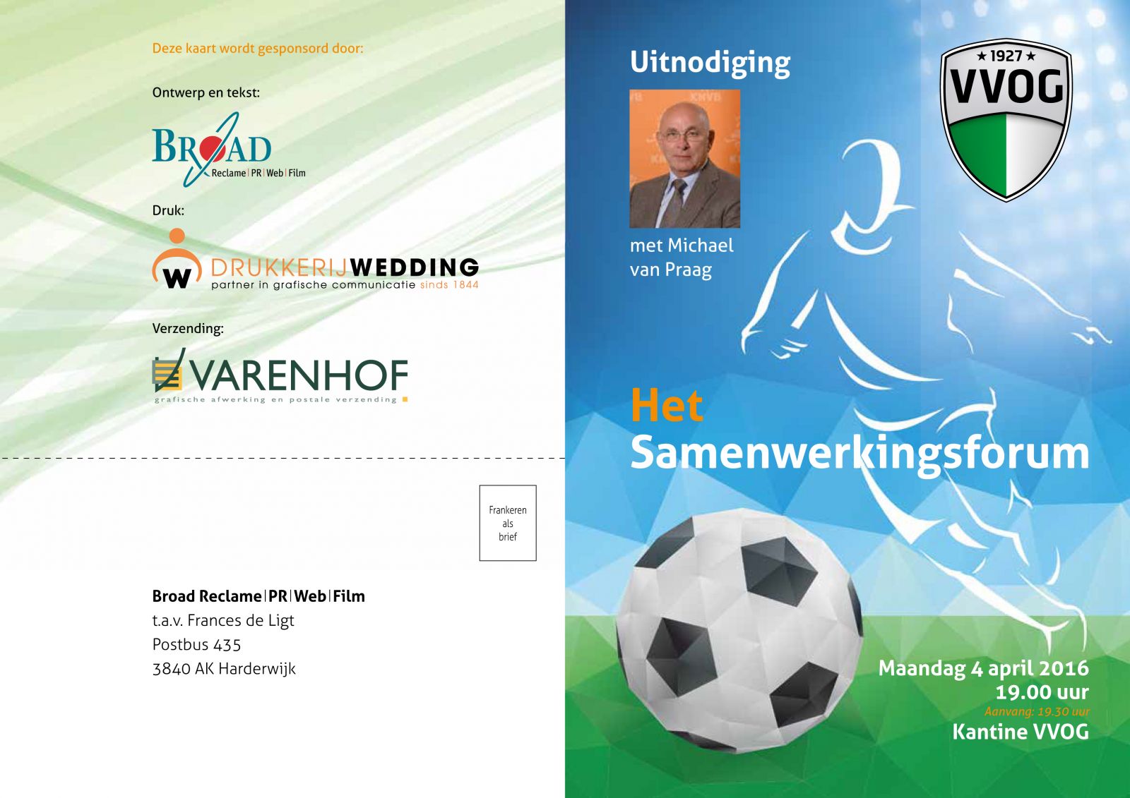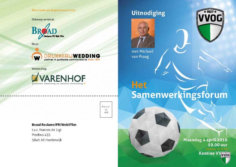 Ja, nog even en dan is het zover. Voor al onze sponsorrelaties, het grote VVOG Samenwerkingsforum met hoofdgast Michael van Praag