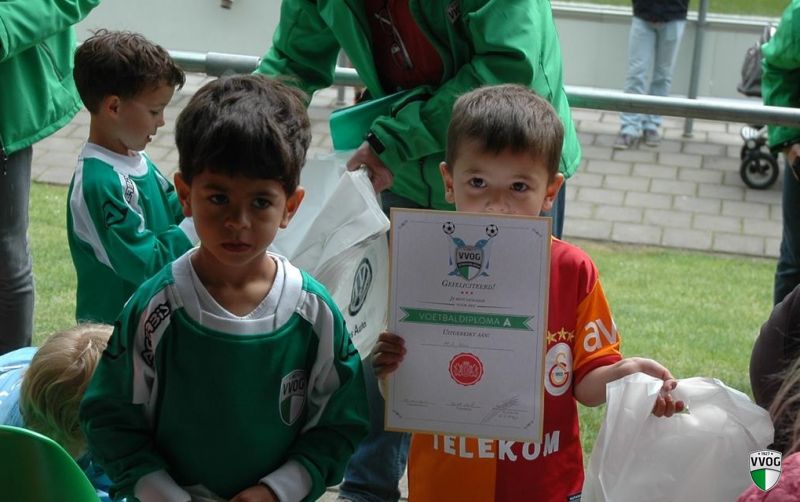 De kinderen ontvingen uit handen van de trotse jeugdvoorzitter allemaal hun welverdiende diploma. Dank en waardering werd uitgesproken voor de trainers Peter Blom, Kasper Sloot en Cor Klaassen, die samen met hun assistent-trainers de kinderen afgelopen seizoen op deskundige doch zeer plezierige wijze weer het nodige hebben bijgeleerd. Het doel van onze voetbalschool is het ontwikkelen van talent en op plezierige wijze stimuleren van de voetbalsport. De trainers weten de juiste snaar te raken en kinderen vertrouwen te geven. Een goede sfeer en veilige omgeving zijn voor de kinderen de belangrijkste basis voor verdere ontwikkeling.