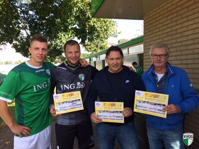 Zaterdag hebben Jan Jurriën Hop en Frans Koornberg namens de A selectie bij Koen Bruining en Antonio Vivas, de vertegenwoordigers van de werkgroep Grote Club Actie VVOG, de eerste twee Superloten afgenomen.