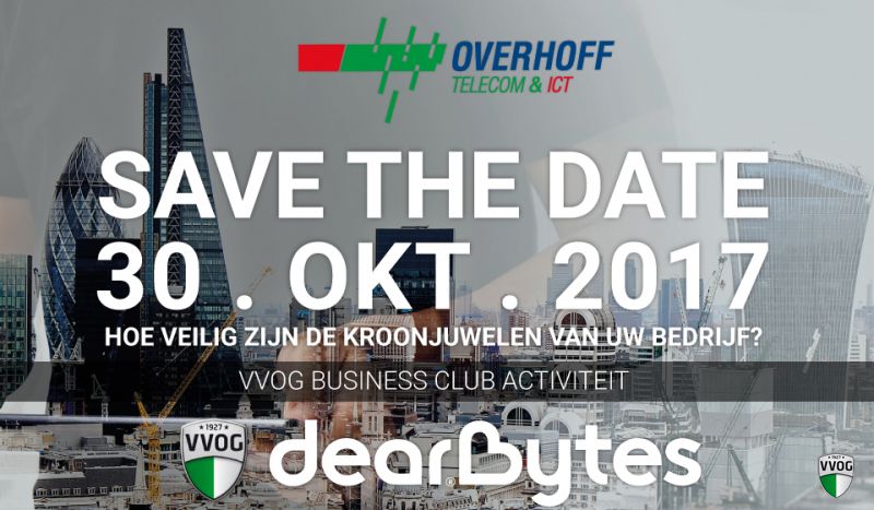 De VVOG businessclub heeft dit seizoen twee bedrijfsbezoeken in haar planning opgenomen. Tijdens het eerste bedrijfsbezoek is de businessclub te gast bij Overhoff Telecom & ICT. Overhoff Telecom & ICT heeft een wervelende gastspreker van DearBytes, de IT Security Specialist van Nederland, uitgenodigd om wat dieper in te gaan op de veiligheid van uw systemen. Het belooft opnieuw een mooie avond te worden.