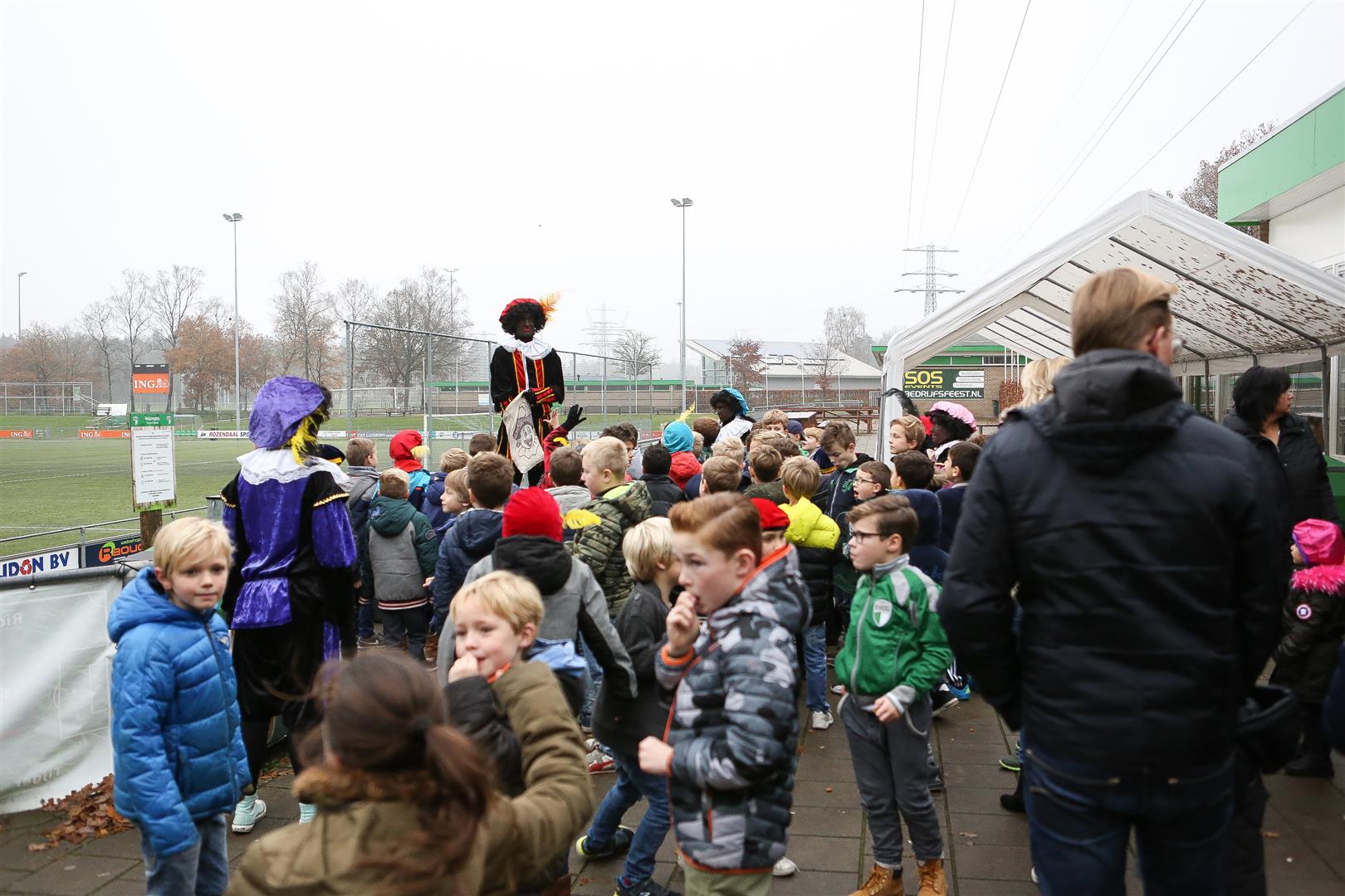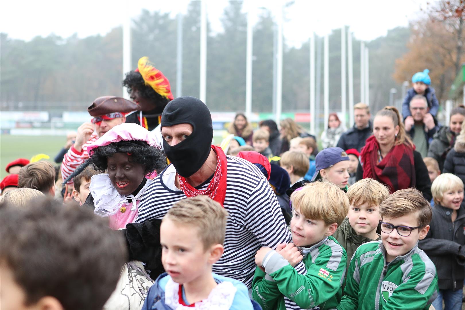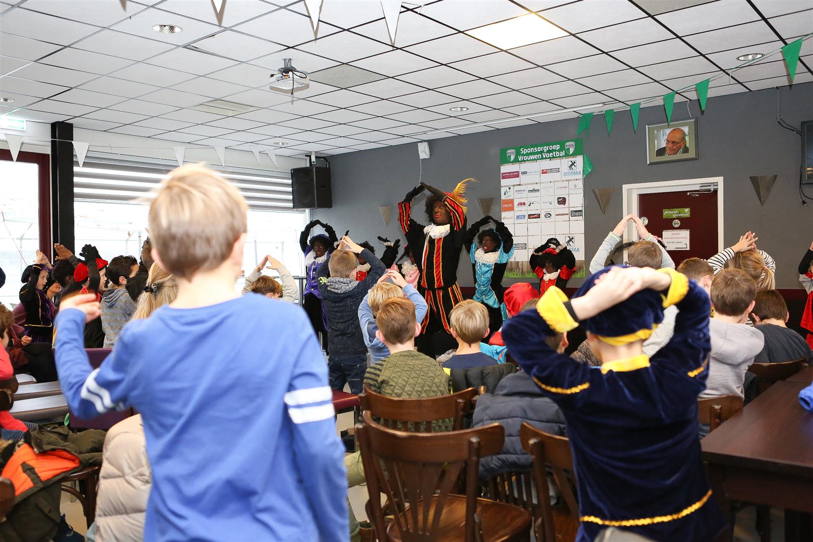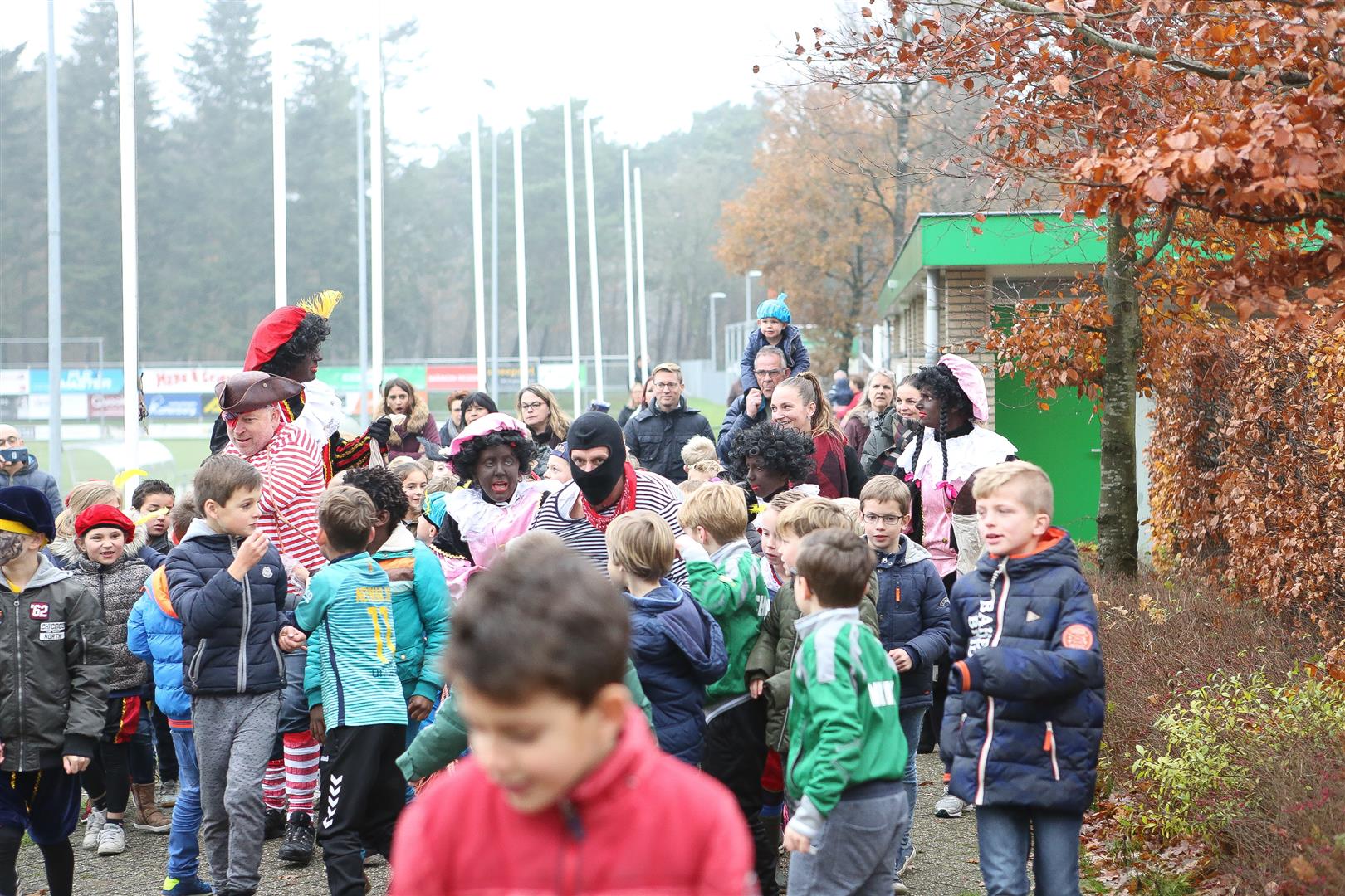 De Zwarte Pieten riepen onze jongste voetballers op om op te letten of zij de Bende van Gulzige Gerard zagen en misschien zelfs konden helpen om de cadeautjes terug te vinden. Natuurlijk deden deze 80 sportievelingen dit graag en hebben zo meegeholpen aan een gezellige middag met een goed einde!