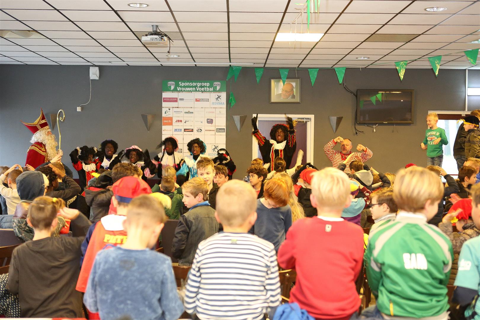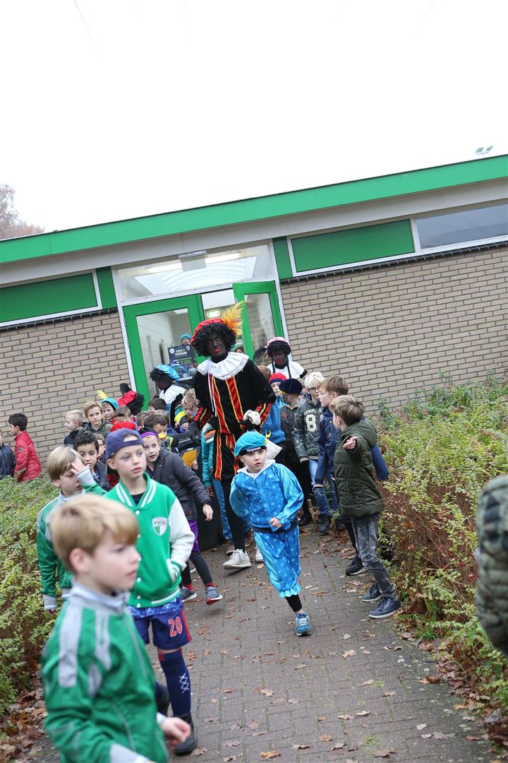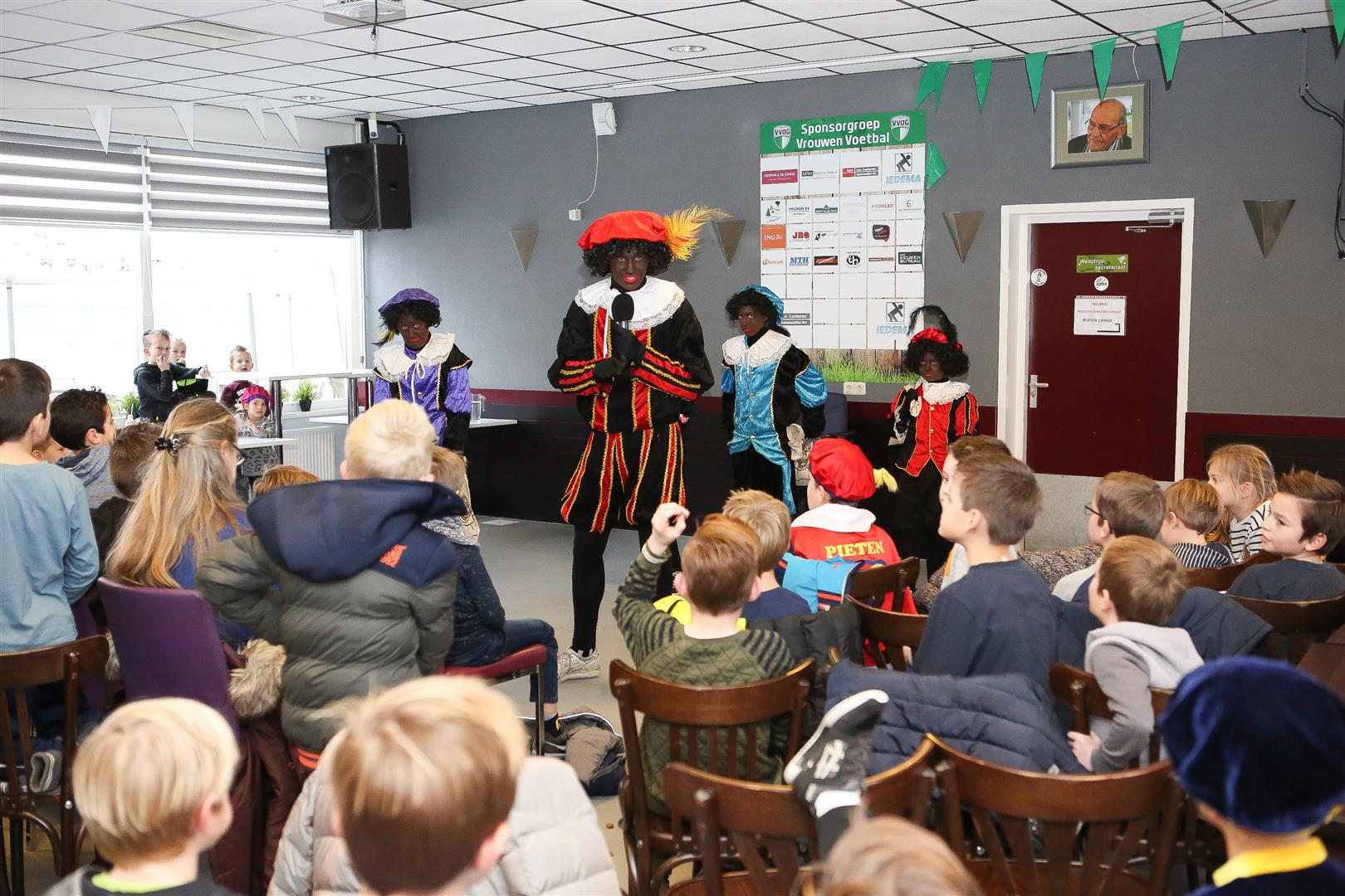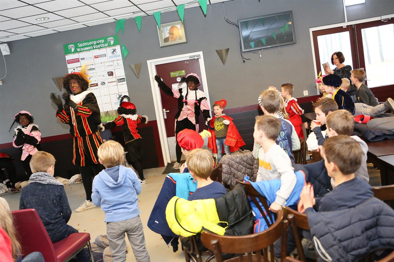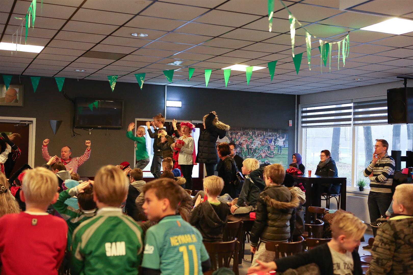 De Zwarte Pieten riepen onze jongste voetballers op om op te letten of zij de Bende van Gulzige Gerard zagen en misschien zelfs konden helpen om de cadeautjes terug te vinden. Natuurlijk deden deze 80 sportievelingen dit graag en hebben zo meegeholpen aan een gezellige middag met een goed einde!