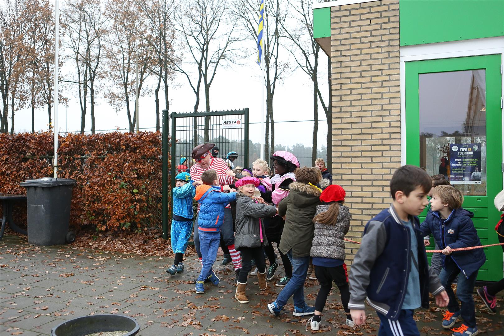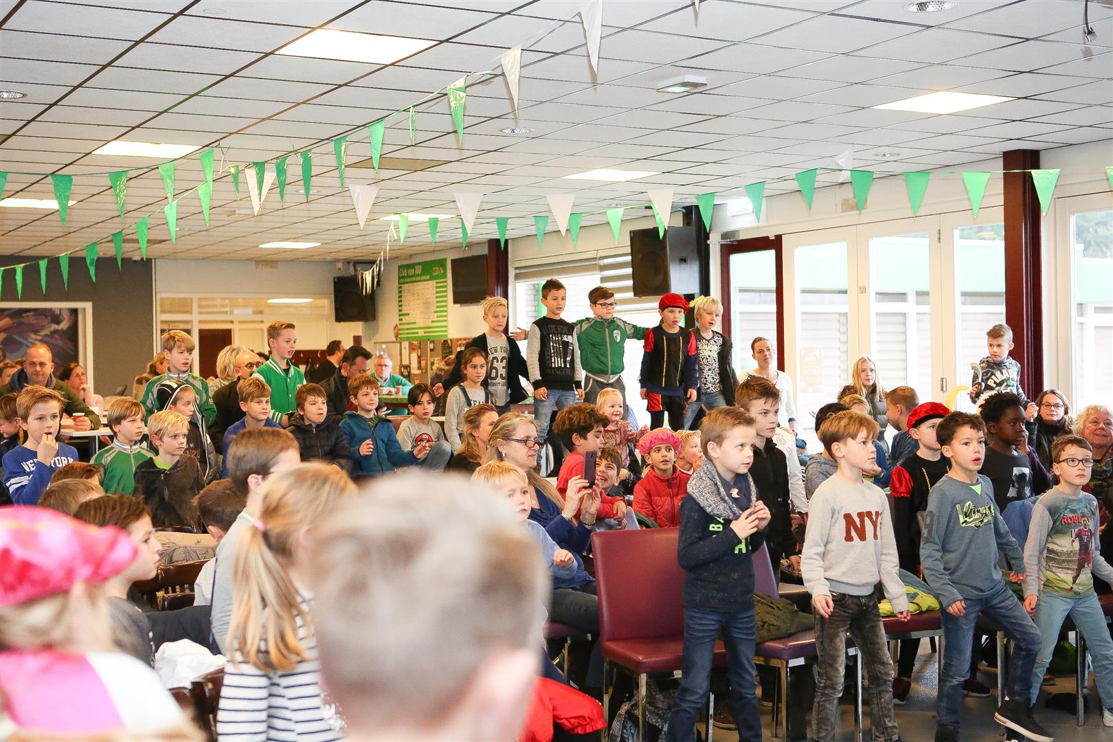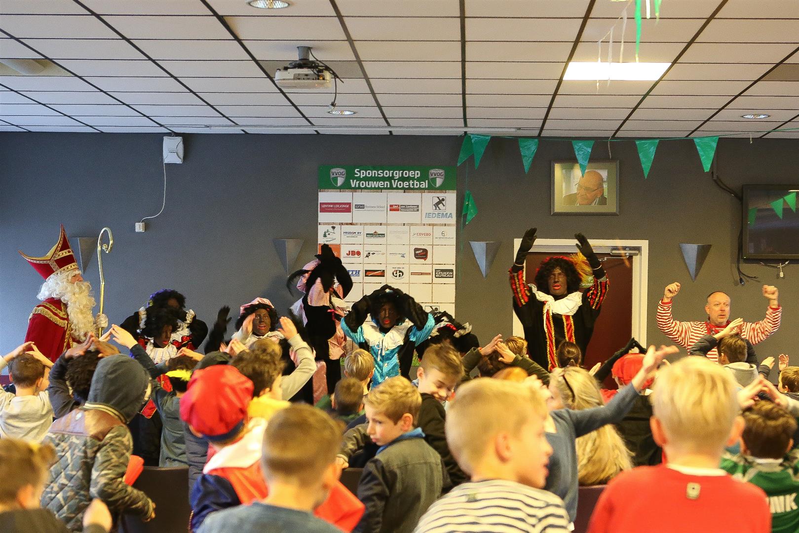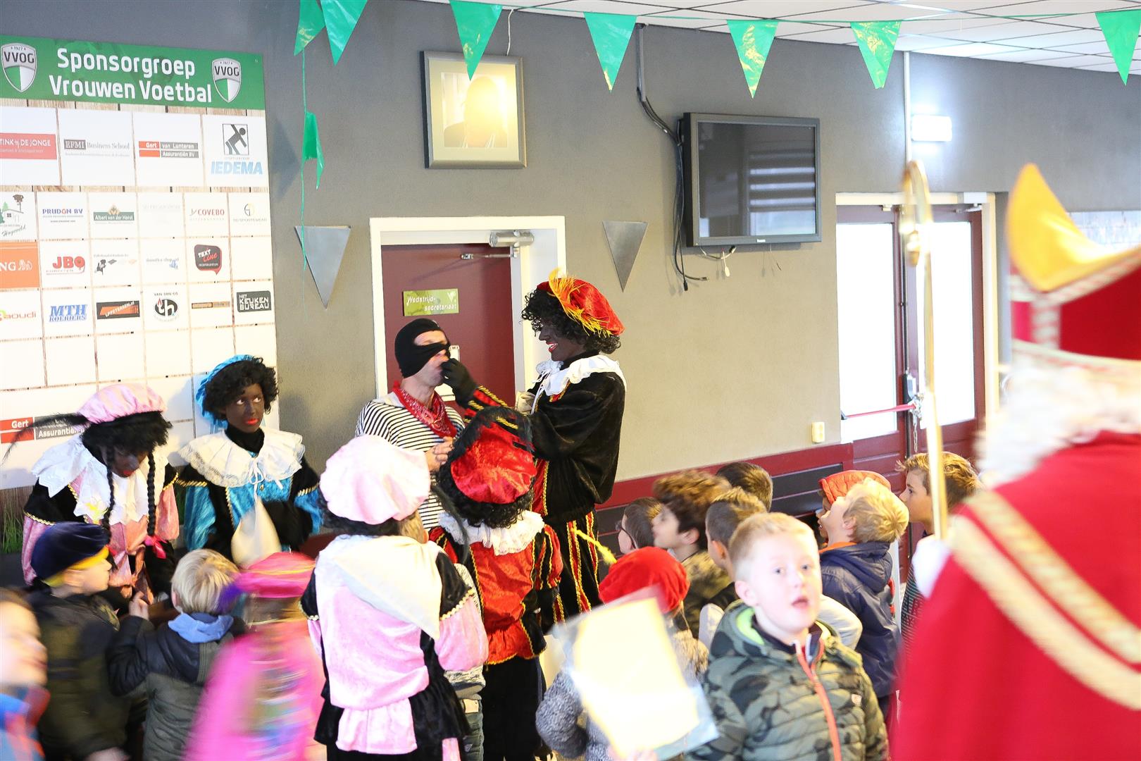 De Zwarte Pieten riepen onze jongste voetballers op om op te letten of zij de Bende van Gulzige Gerard zagen en misschien zelfs konden helpen om de cadeautjes terug te vinden. Natuurlijk deden deze 80 sportievelingen dit graag en hebben zo meegeholpen aan een gezellige middag met een goed einde!