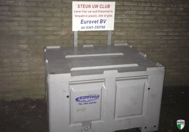 Frituurvet over na de feestdagen? Lever het in bij VVOG. Op ons sportpark heeft Eurovet een inzamelcontainer geplaatst waarin u uw gebruikte frituurvet verpakt in glas, blok of plastic kun inleveren. Eurovet is kledingsponsor van VVOG JO19-1 en is een inzamelaar van organische rest- enafvalstoffen.