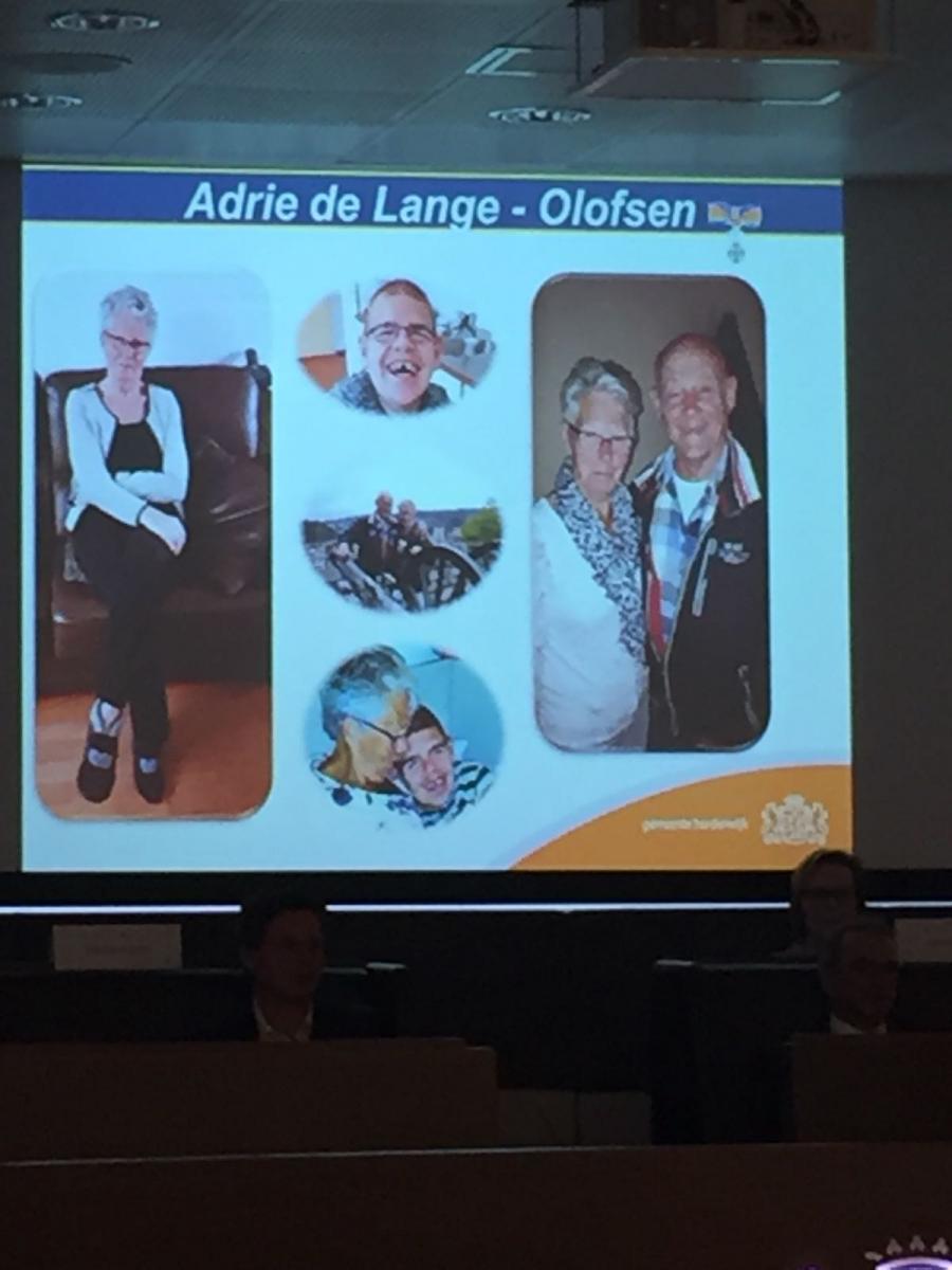 Naast haar VVOG vrijwilligerswerk was/is Adrie nog actief op meerdere fronten namelijk 25 jaar Thuiszorg, 40 jaar wijkhoofd van de Nierstichting en het oppassen en zorg verlenen aan hun kleinkind Niels.