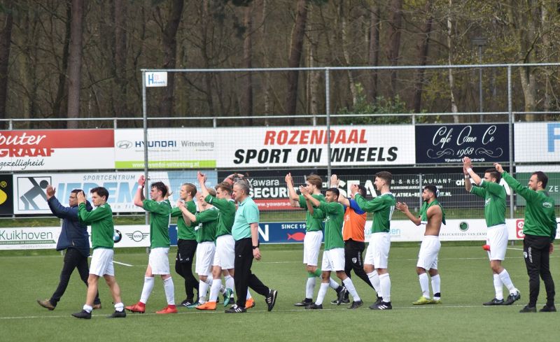De wedstrijd van 26 mei tegen SDV Barneveld was dan ook erg cruciaal voor ons. Als we wonnen pakten we de 3de periode, bij gelijk spel handhaving en bij verlies nacompetitie om in de 4de divisie te blijven. We kwamen met 0-1 achter en ondanks dat, bleven we werken en motiveerden we elkaar. Dat beloonde ons met een 1-1 en zelfs 2-1. We kregen net voor de rust de 2-2 tegen en dat was niet prettig vlak voor rust. In de kleedkamer sprak de trainer ons toe en spraken de spelers elkaar toe. Ik keek om me heen en zag bij elke speler gespannen gezichten. We gingen de 2de helft goed in en ook daar beloonden we weer ons werk. De benutte penalty werd er strak ingeschoten door Mikey. En ook bij dat doelpunt vierden we het gezamenlijk.