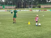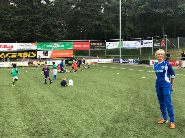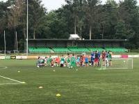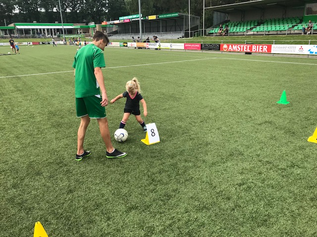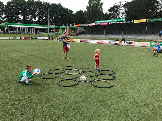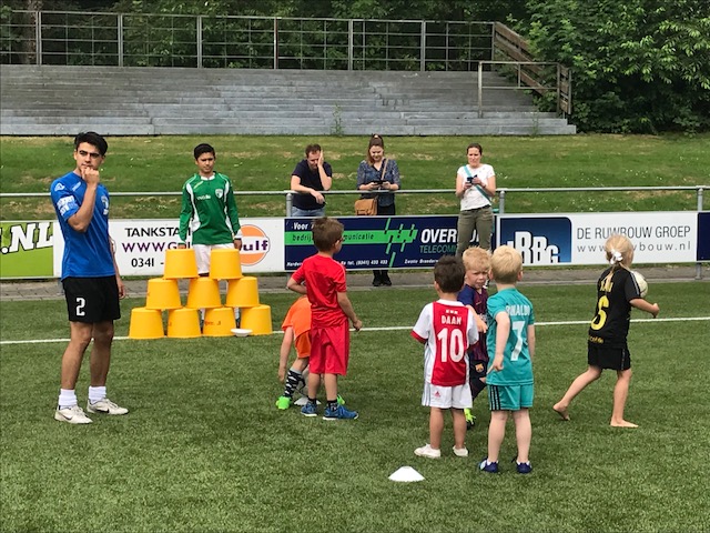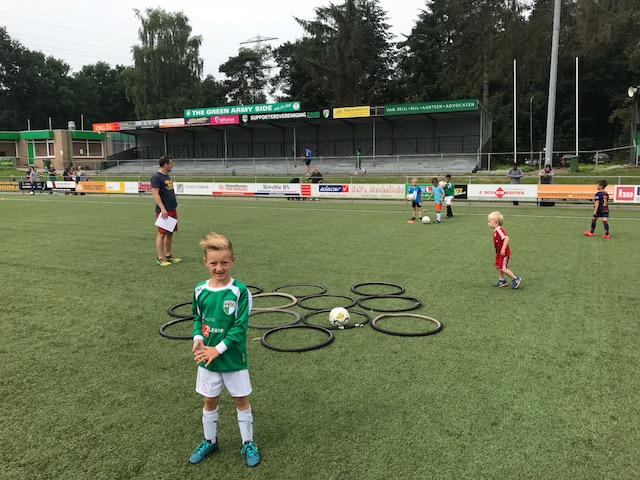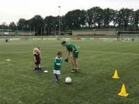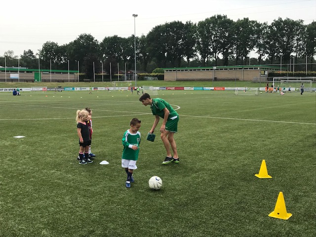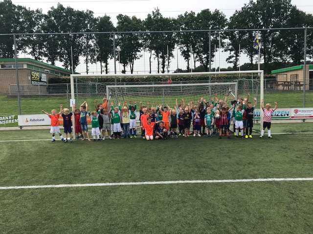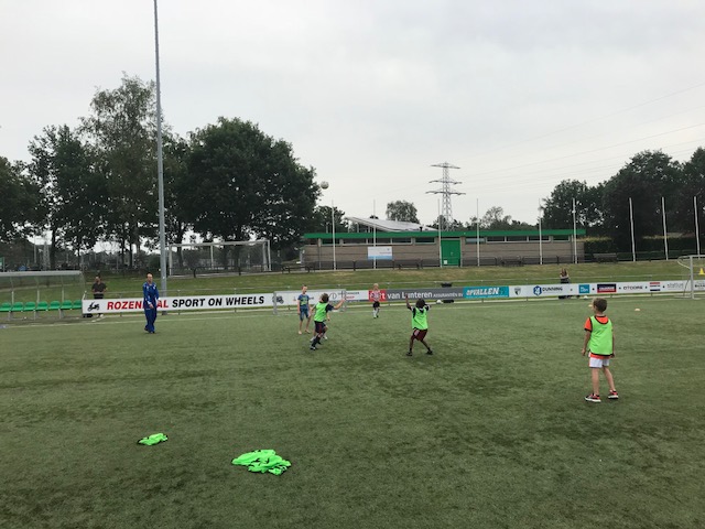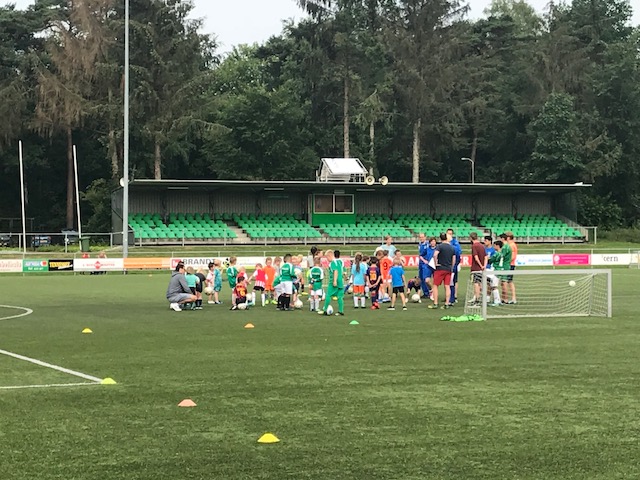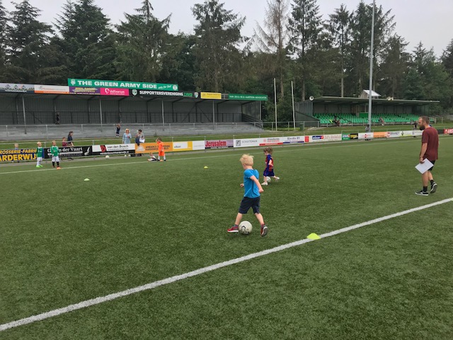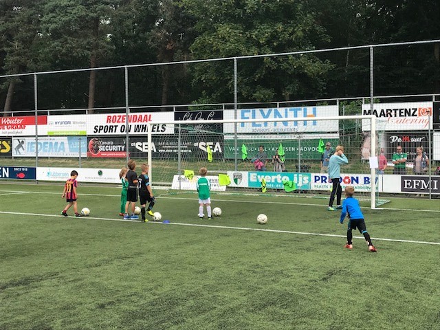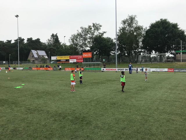 Extra leuk naast deze diverse oefeningen was het prachtige voetbalweer. Er werd natuurlijk gepauzeerd met lekker fris drinken, zodat ze weer vol enthousiasme verder konden.