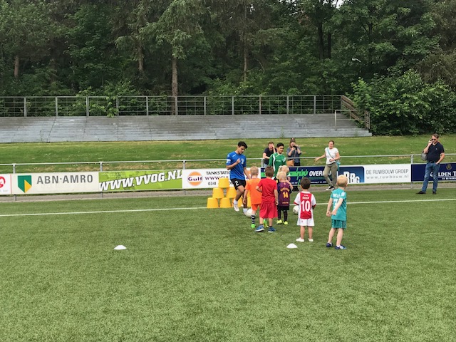 Ongeveer 50 kinderen kwamen naar Sportpark de Strokel om bij VVOG te ervaren hoe het is om te trainen bij Voetbalschool Dolfijn en welke leuke en leerzame oefeningen je daar doet.