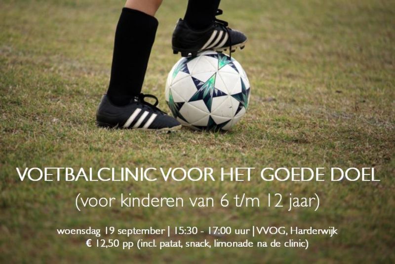 Is jouw zoon, dochter, neefje, nichtje, buurjongen of buurmeisje ook zo gek van voetbal? Kom naar de voetbalclinic op woensdag 19 september van 15:30 -17:00 uur bij VVOG in Harderwijk. Na de clinic is er patat met een snack en limonade!!