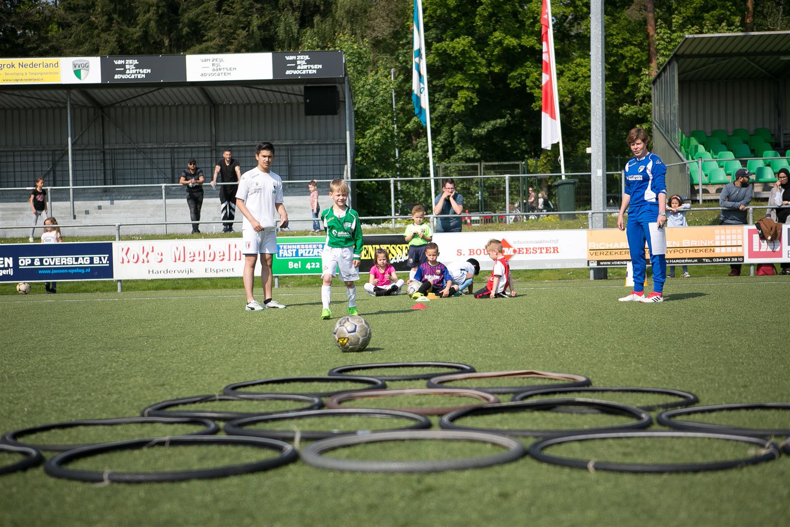 Er waren 8 verschillende onderdelen waar de kinderen hun voetbalvaardigheden konden laten zien. Onder andere latje-trap, estafette, kleurcommando en uiteraard een partijtje waren onderdelen van het diplomaprogramma.