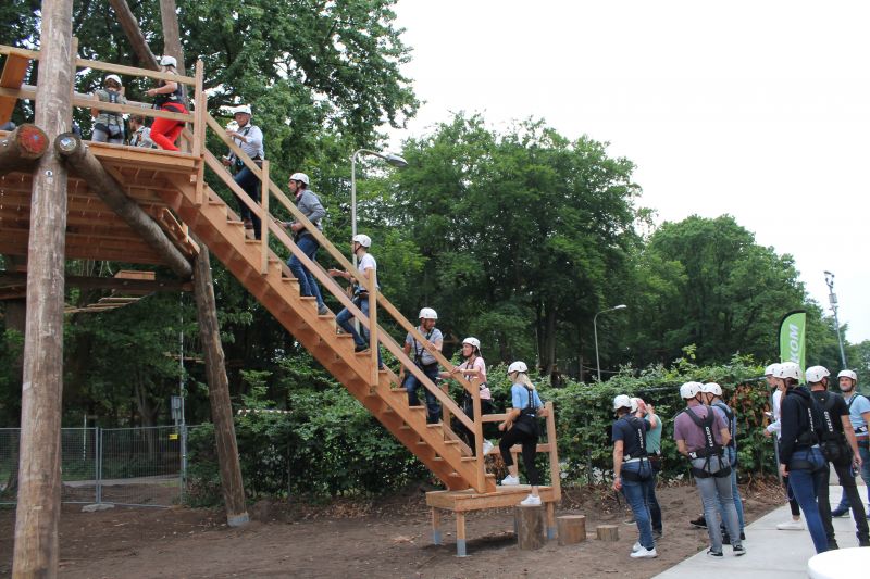 Vele sponsoren waren woensdagavond 5 juni afgekomen op de slotbijeenkomst van de VVOG Businessclub. Deze keer was de ontvangst bij hotel Van der Valk. Voorzitter Jan ter Steeg van de Businessclub heette eenieder van harte welkom. Hij blikte in het kort terug op een seizoen van hoogte- en hier en daar wat dieptepunten. De handhaving in de 3e divisie was natuurlijk mooi, maar toch hadden we graag iets ruimer boven de degradatiestreep gestaan. Ook de georganiseerde evenementen voor de Businessclub konden zich in het afgelopen seizoen op een grote belangstelling verheugen. De openingsavond met sportpresentator Sierd de Vos, de avond met autocoureur Jan Lammers en de bijeenkomst "maatschappelijk verantwoord ondernemen" met prof. Luc van Liedekerke waren een groot succes. Met dank aan de vele sponsoren mogen we terugzien op een mooi seizoen 2018-2019. De manager van het hotel, mevrouw Chrissy van der Valk, vertelde over de ontstaansgeschiedenis van dit hotel en de wens om in de komende periode het hotel verder uit te breiden met kamers en een wellnessruimte. Vervolgens gingen we gezamenlijk naar het naastgelegen Klimbos Harderwijk, onlangs gerealiseerd door VVOG-sponsor SOS-Events. Daar kon eenieder deelnemen aan een tweetal activiteiten, natuurlijk het klimmen en men kon een mooie rit met de E-chopper door Harderwijk maken. Op de prachtige locatie werd een heerlijke maaltijd geserveerd door een andere sponsor, de Graaf van Gelre. De projectontwikkelaar van het nieuw te ontwikkelen food- en leisurepark gaf een informatieve rondleiding over het terrein. Eind december 2019 moet het allemaal klaar zijn! De avond werd afgesloten met een netwerkborrel en een hapje bij Van der Valk. Drie leden van de sponsorcommissie hebben hun taak neergelegd en werden deze avond bedankt voor al hun werkzaamheden. Jarenlang waren Melanie Murk, Yvonne Goossensen en Cees ten Hove nauw betrokken bij de sponsorcommissie en de VVOG Businessclub. Voorzitter Jan ter Steeg tipte nog even de noodzaak aan van versterking van de Businessclub! We mogen terugkijken op een zeer geslaagde avond. Op naar het komend seizoen!