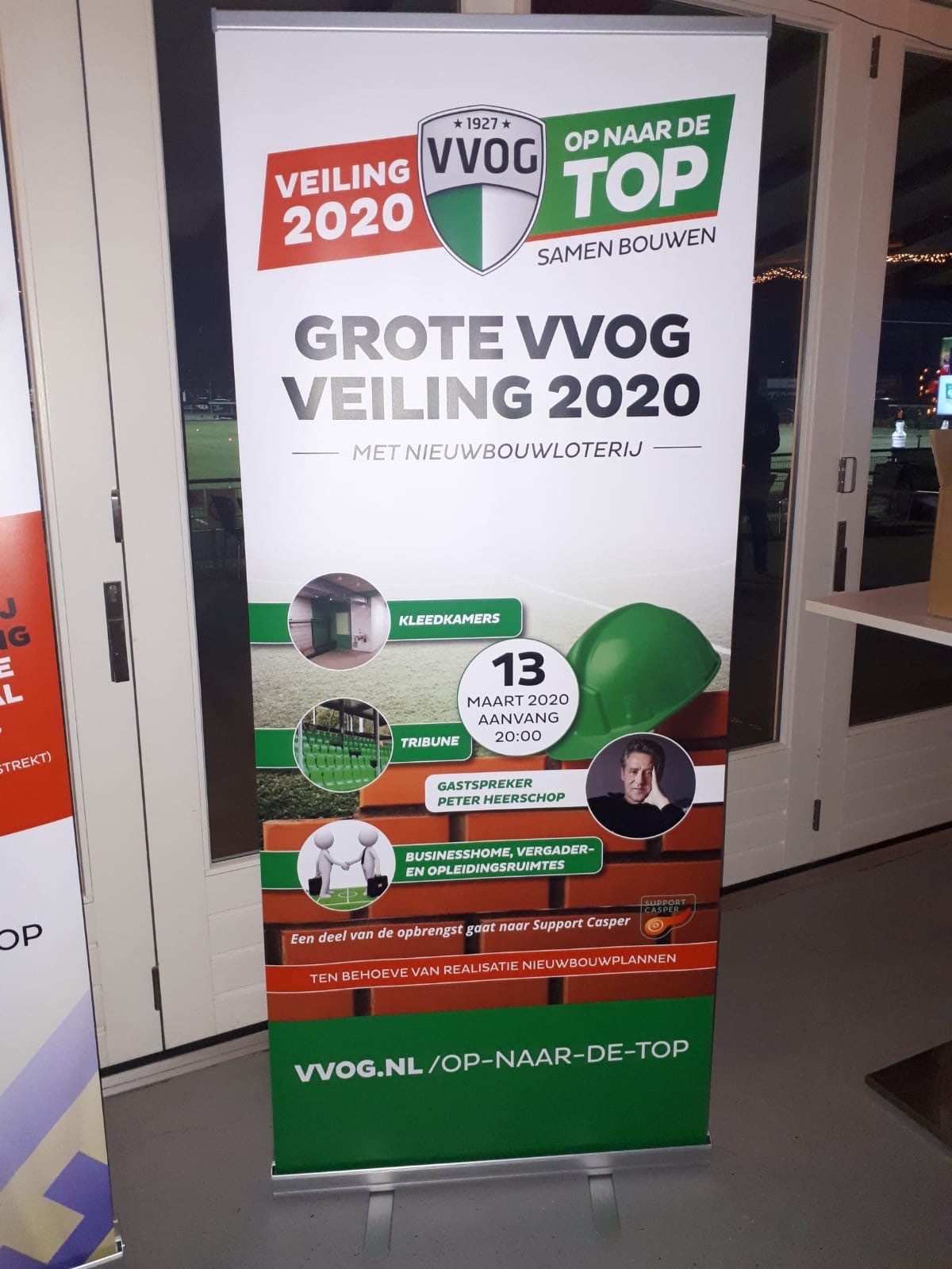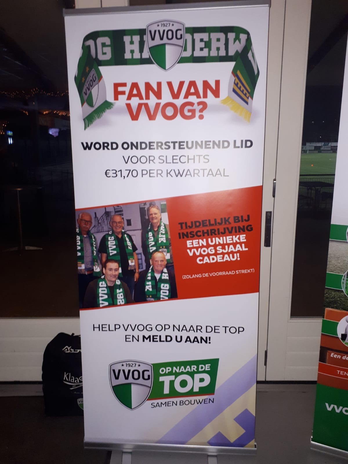 Hierna werden de banners van de Grote Veiling getoond en werden de flyers verspreid. Ook was er een banner waarmee ondersteunende leden worden gevraagd die bij aanmelding een nieuwe geweldige VVOG sjaal krijgen en kon men hier een flyer van meenemen voor zichzelf of voor anderen.