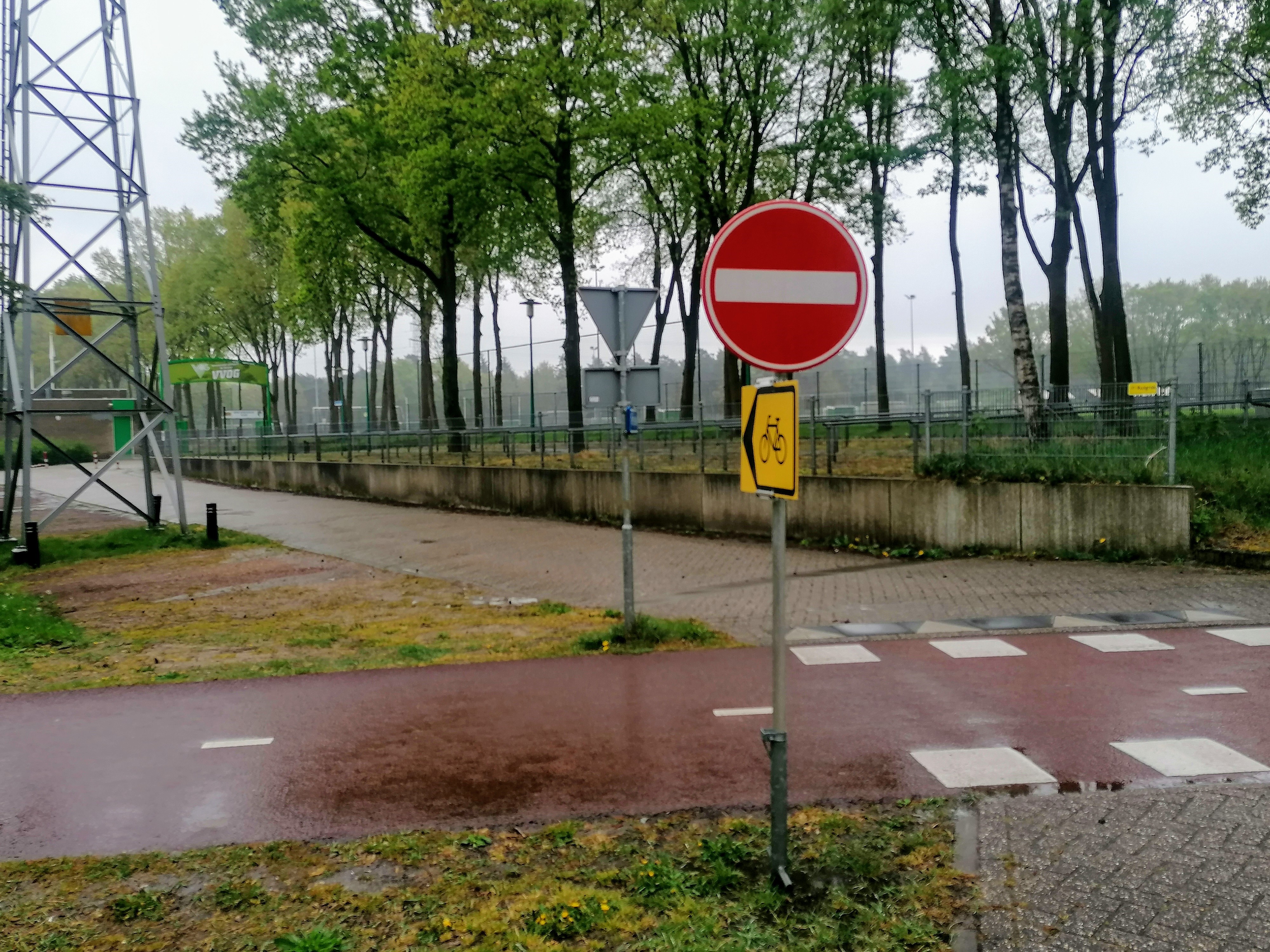 Eenrichting voor voertuigen en fietsers via de tweede ingang naar de stalling.