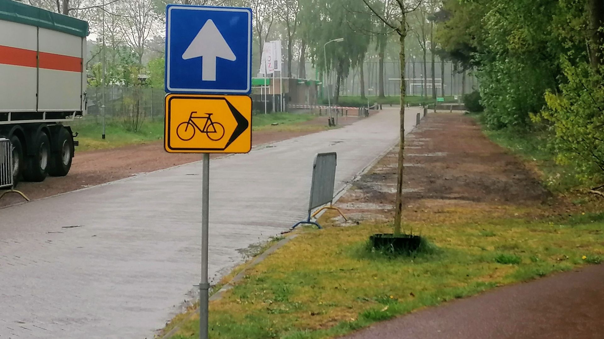 Fietsers rijden voortaan door naar de tweede ingang waardoor er minder belasting is op de weg van de parkeerplaats.