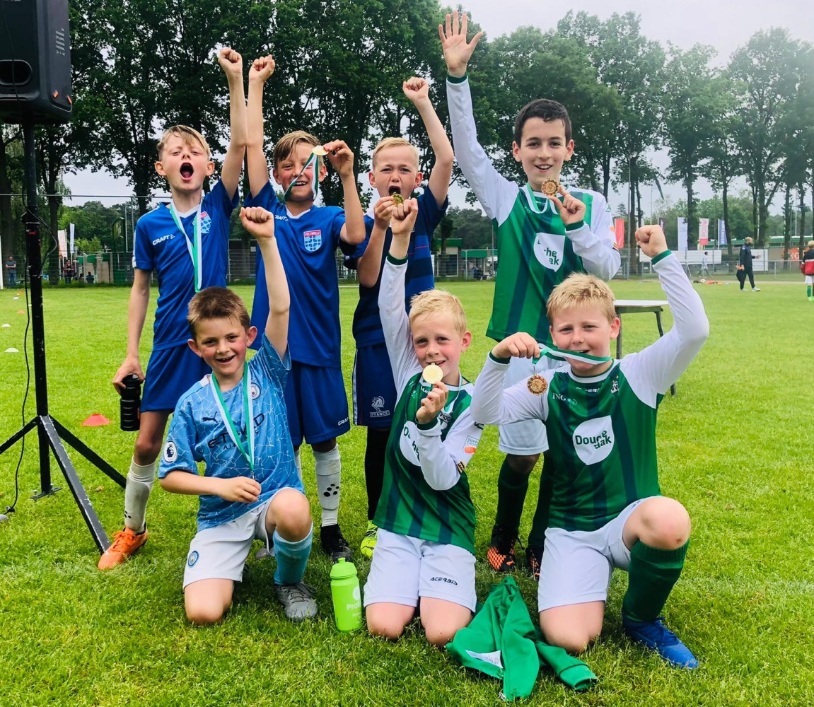 Zaterdag 5 juni was het dan zover. Een toernooi op sportpark De Strokel met internationale allure. Spelers uit de JO9 en JO10 van VVOG waren samengevoegd in Europese topteams als Real Madrid, Bayern München en Juventus. In totaal streden 8 teams om de eer maar natuurlijk ook om die felbegeerde gouden medaille.