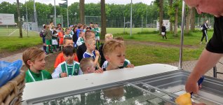 Voordat de kinderen het sportveld verlieten konden ze nog even langs de bakfiets van ’t Boerinneke om daar nog even een ijsje te scoren zodat niemand met lege handen kwam te staan.