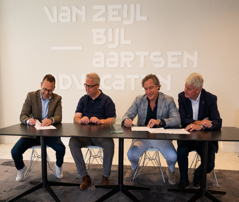 Frans Aartsen en Erik Kuper ondertekenden in het Koetshuis van de villa onder goedkeurende blikken van VVOG-voorzitter Fred Moll en Jan ter Steeg, voorzitter van de sponsorcommissie, de nieuwe Goudovereenkomst. Van Zeijl Bijl Aartsen is al jaren verbonden als sponsor aan VVOG. Frans Aartsen heeft zelf een voetbalverleden (keeper) bij VVOG.