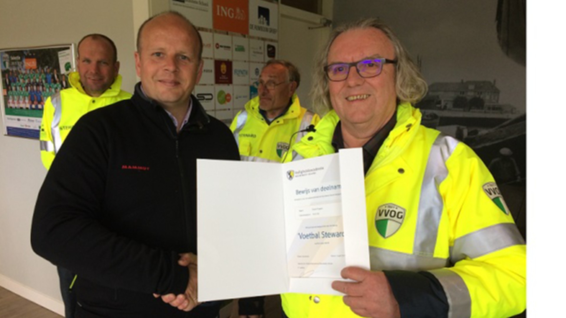 Er worden vanuit de KNVB een aantal verplichtingen opgelegd waar je aan moet voldoen om deel te nemen aan de 2e en 3e divisie. De regels zijn dus niet door VVOG verzonnen. De vereniging heeft geen keuze en moet voldoen aan wat door de bond is opgelegd. Daarnaast heeft de vereniging de plicht dat door de burgermeester een veiligheidverklaring wordt afgegeven. Voordat de burgermeester dat doet laat hij de politie, brandweer, verkeersdeskundige en handhaving naar De Strokel gaan om alles te controleren en daar verslag van te doen. Dat betekent dat we ook vanuit de gemeente zaken zoals vluchtwegen, calamiteitenplan, verkeersplan etc. moeten regelen. Pas als alles klopt en aan alle opgegeven punten is voldaan ontvangen we die veiligheidsverklaring. Die gaat naar de KNVB en pas dan mogen we voetballen.