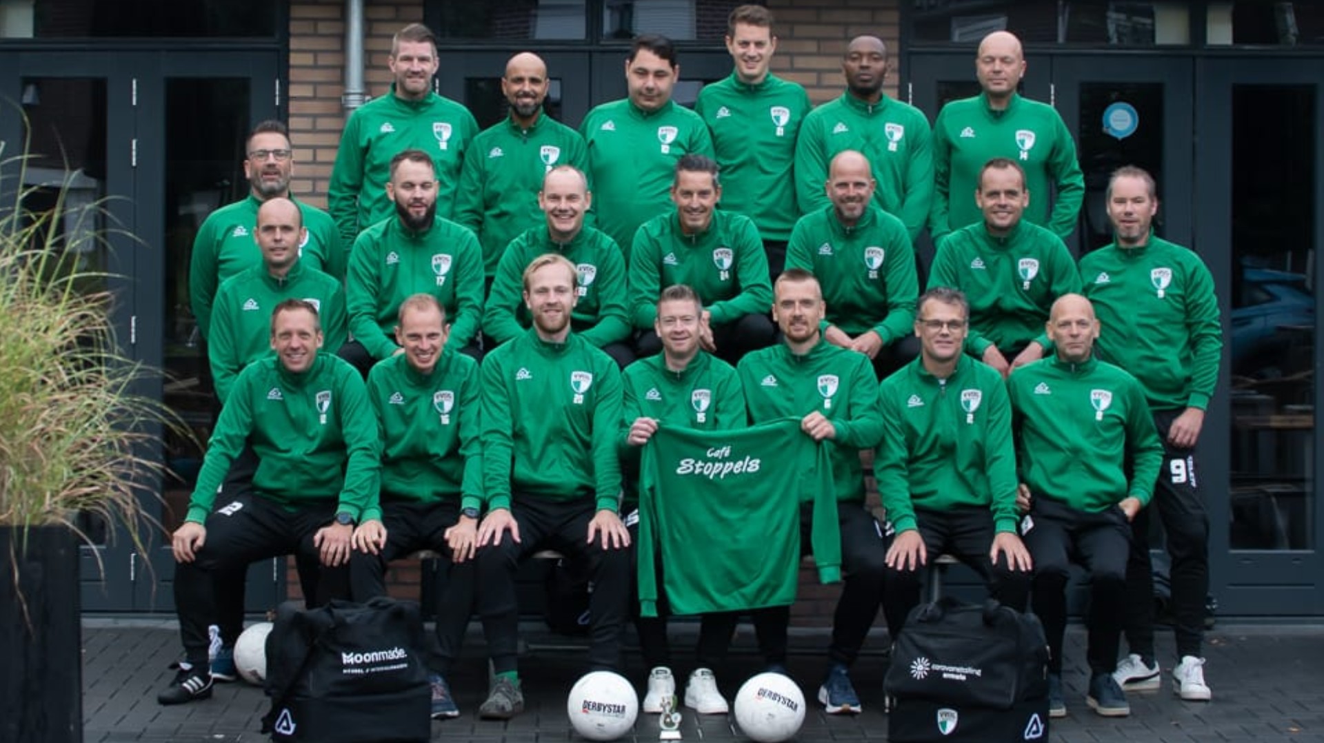 De naam Café Stoppels zal gaan schitteren op de trainingspakken.