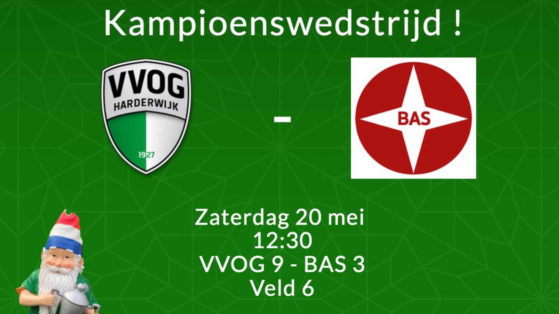 Het is bij onze trouwe volgers al een tijdje bekend, maar zaterdag 20 mei kunnen wij -VVOG Heren 9- op ons eigen sportpark kampioen worden van de 6e klasse!