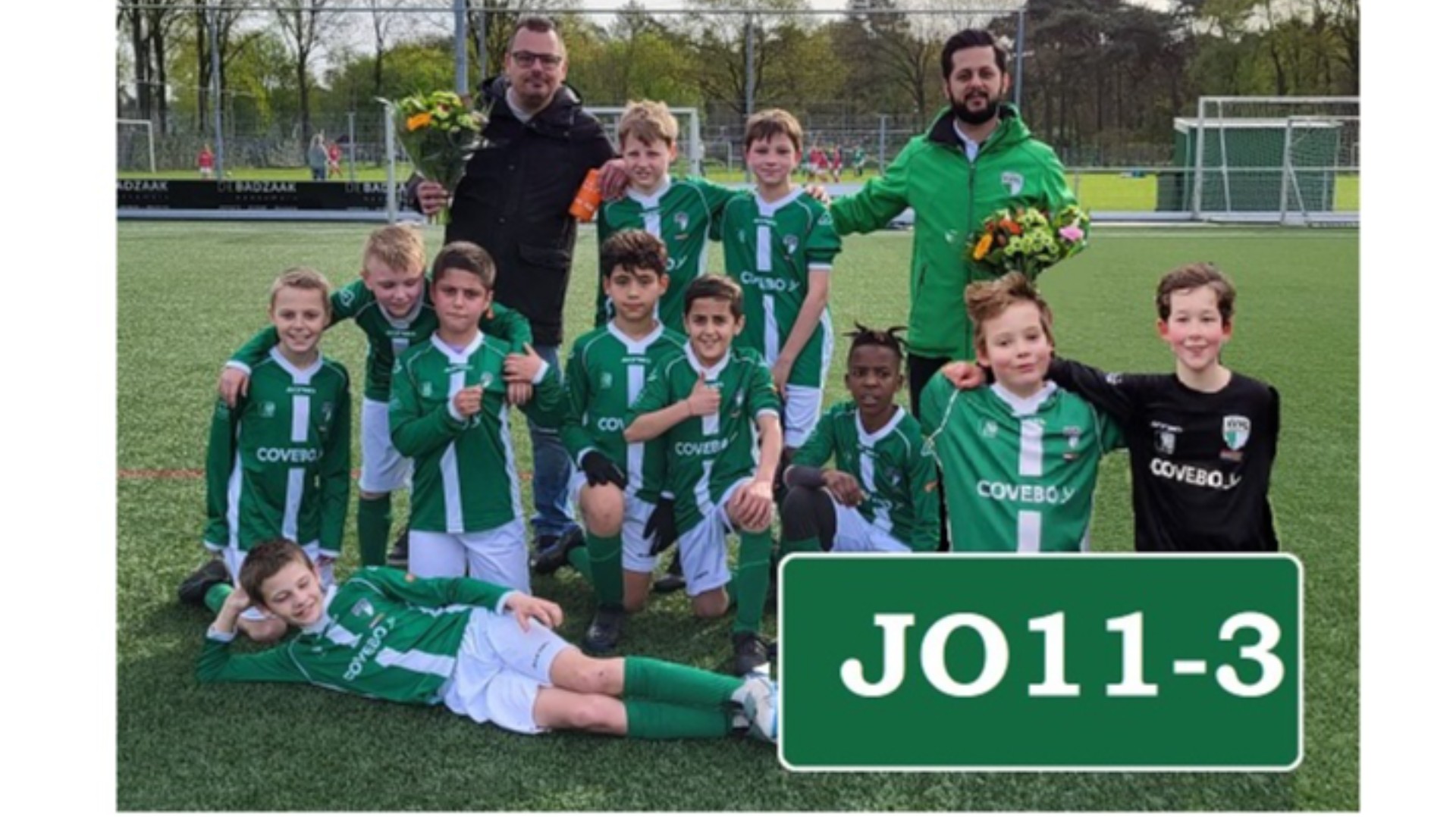 Na een seizoen hard werken hebben onze kanjers van JO11-3 de 4e en laatste fase van de competitie afgesloten als kampioen!