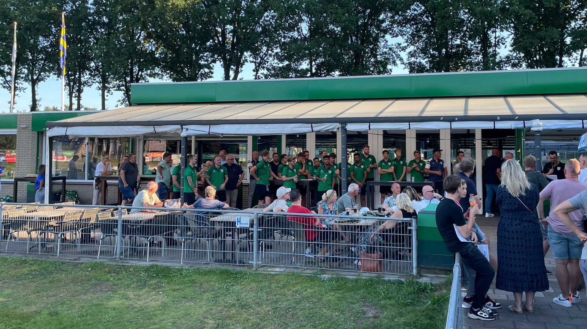 De kantine is gewoon open voor iedereen, maar het vriendelijke verzoek gebruik te maken van de ingang aan de kant van het wedstrijdsecretariaat. Het achterste deel van het terras is ook beschikbaar.