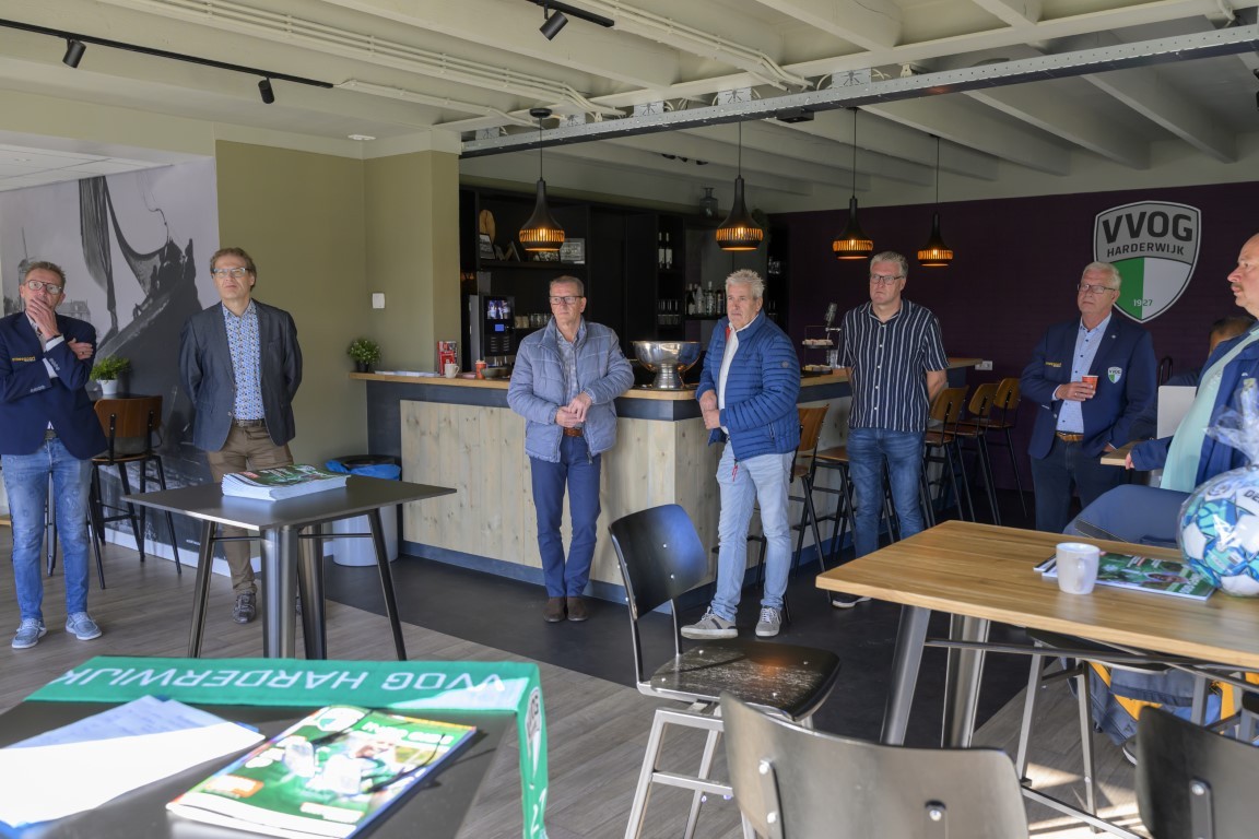 Voor de officiële opening zijn onder andere het VVOG-bestuur, de gemeente Harderwijk, Bertil Slomp van aannemer Sallandse United en Jan ter Steege van adviesbureau PLANN-Ingenieurs aanwezig.