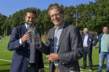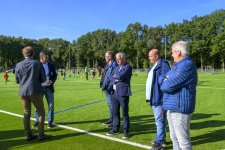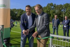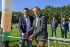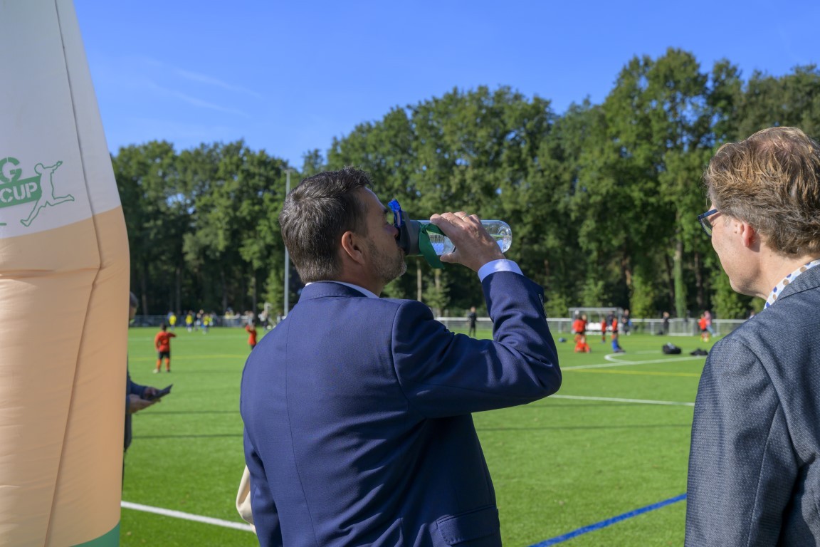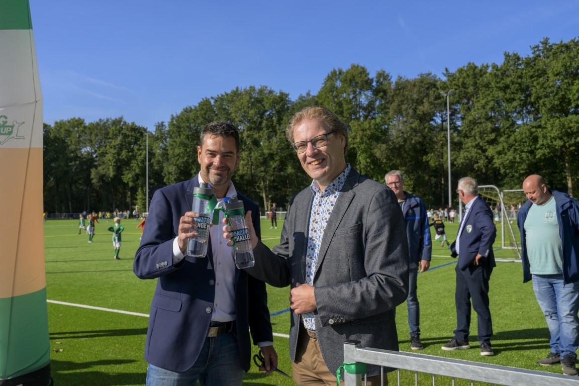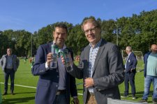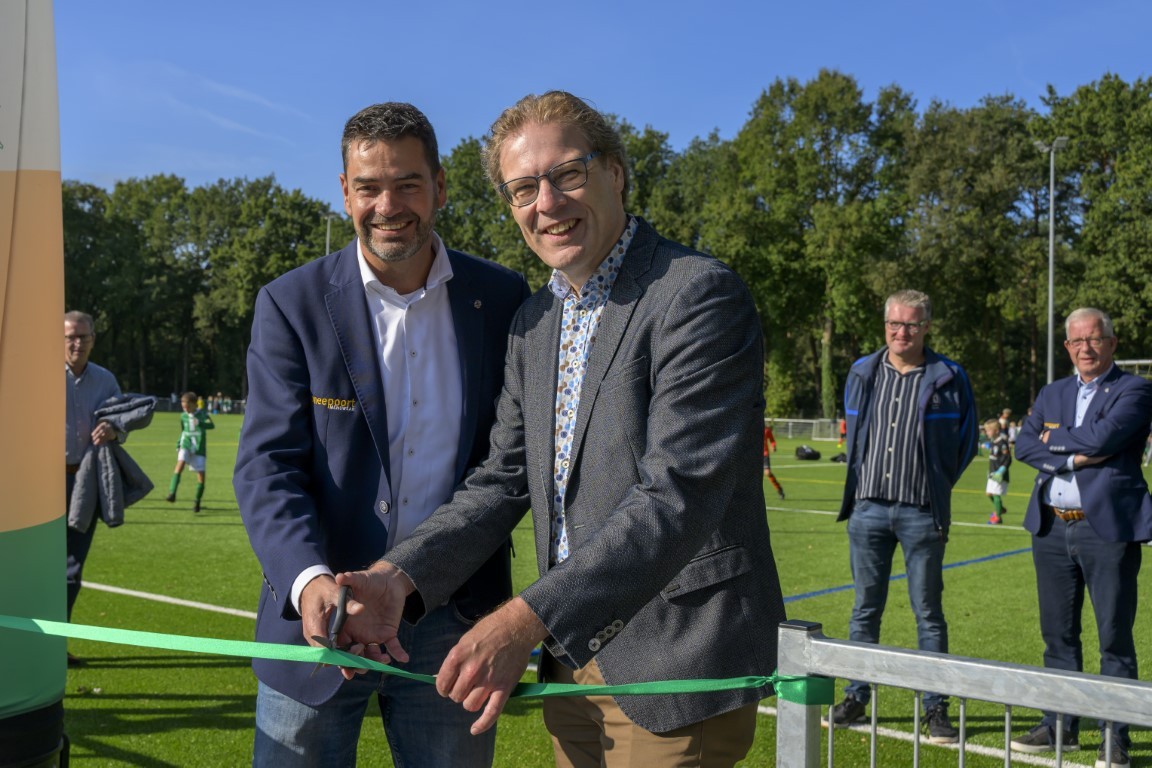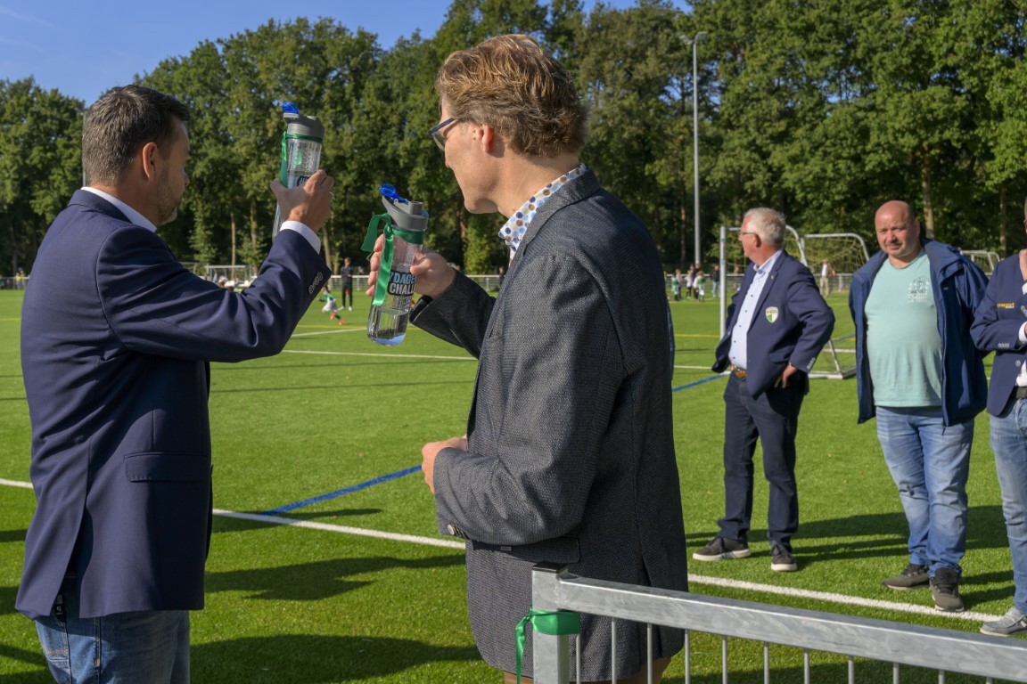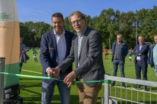 Terwijl er op drie kwartveldjes wordt gevoetbald door de jeugd, wordt het nieuwe kunstgrasveld van VVOG Harderwijk zaterdagochtend officieel geopend door voorzitter Gert Jan Krop en wethouder sport Marcel Companjen van de gemeente Harderwijk. Het lint wordt doorgeknipt en er is een toast moment.