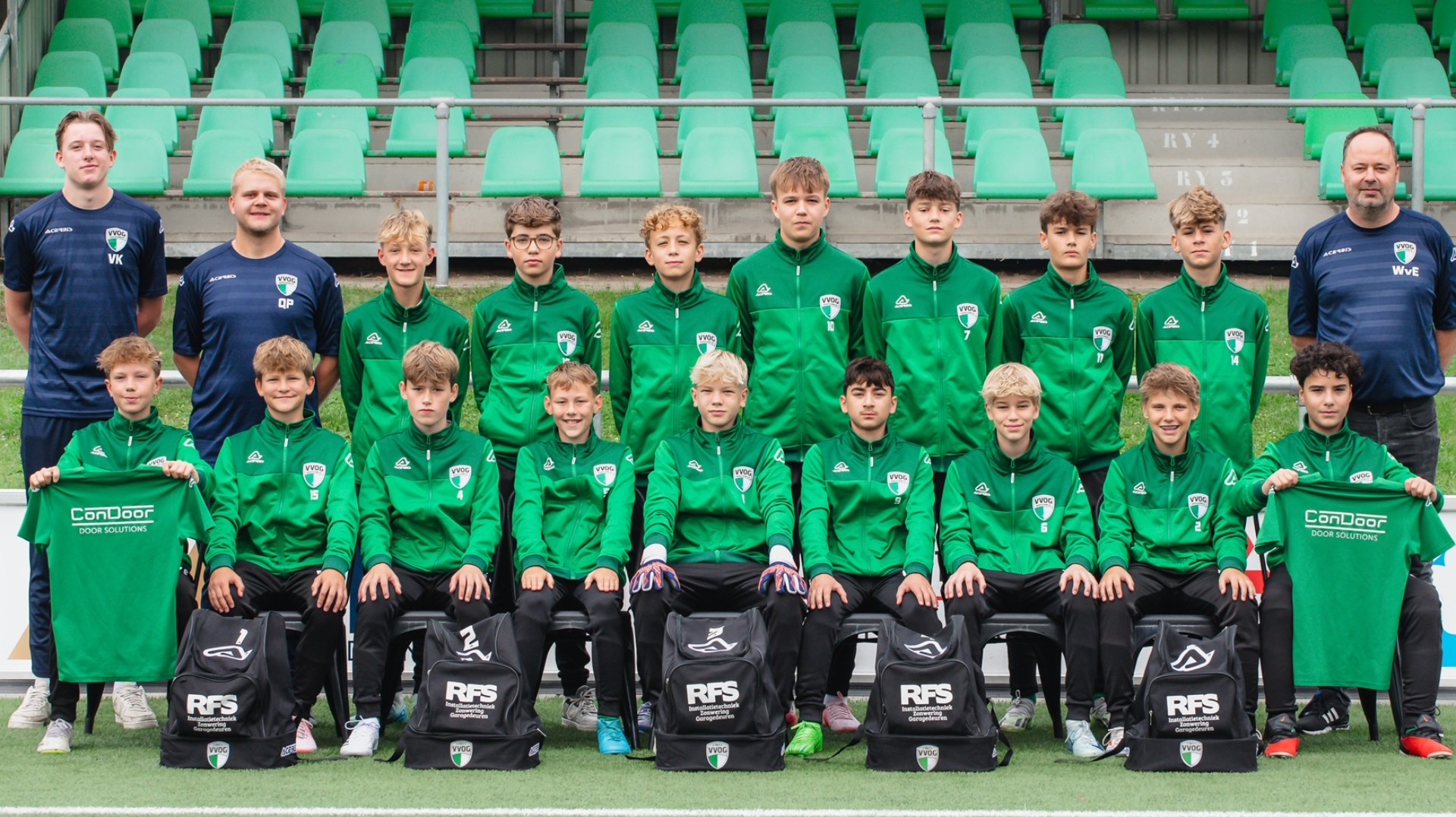 Dit seizoen schittert de JO14-2 weer in nieuwe trainingspakken, inloopshirts en sporttassen, mede dankzij de gulle steun van onze teamsponsors Condoor Door Solutions en RFS Installatietechniek.