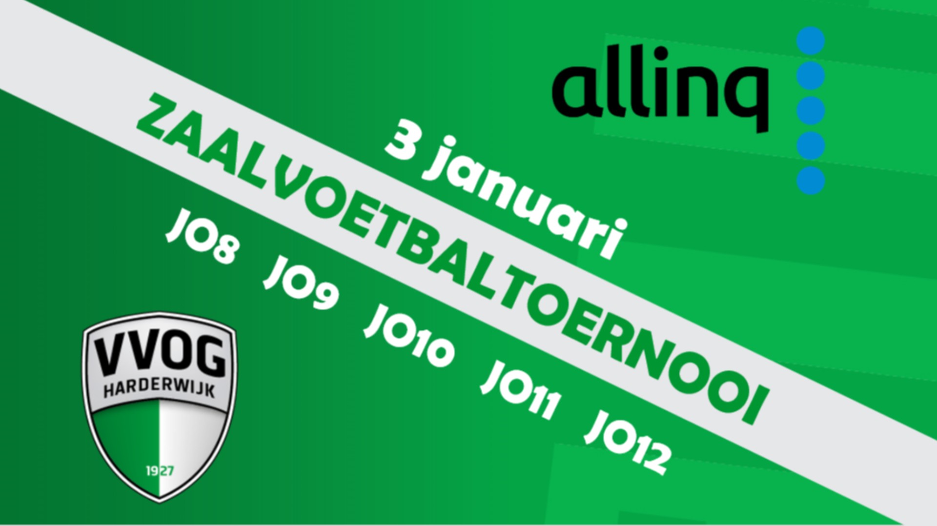 Op 3 januari is weer het Allinq zaalvoetbaltoernooi voor JO8, JO9, JO10, JO11 en JO12 spelers in sporthal de Sypel.