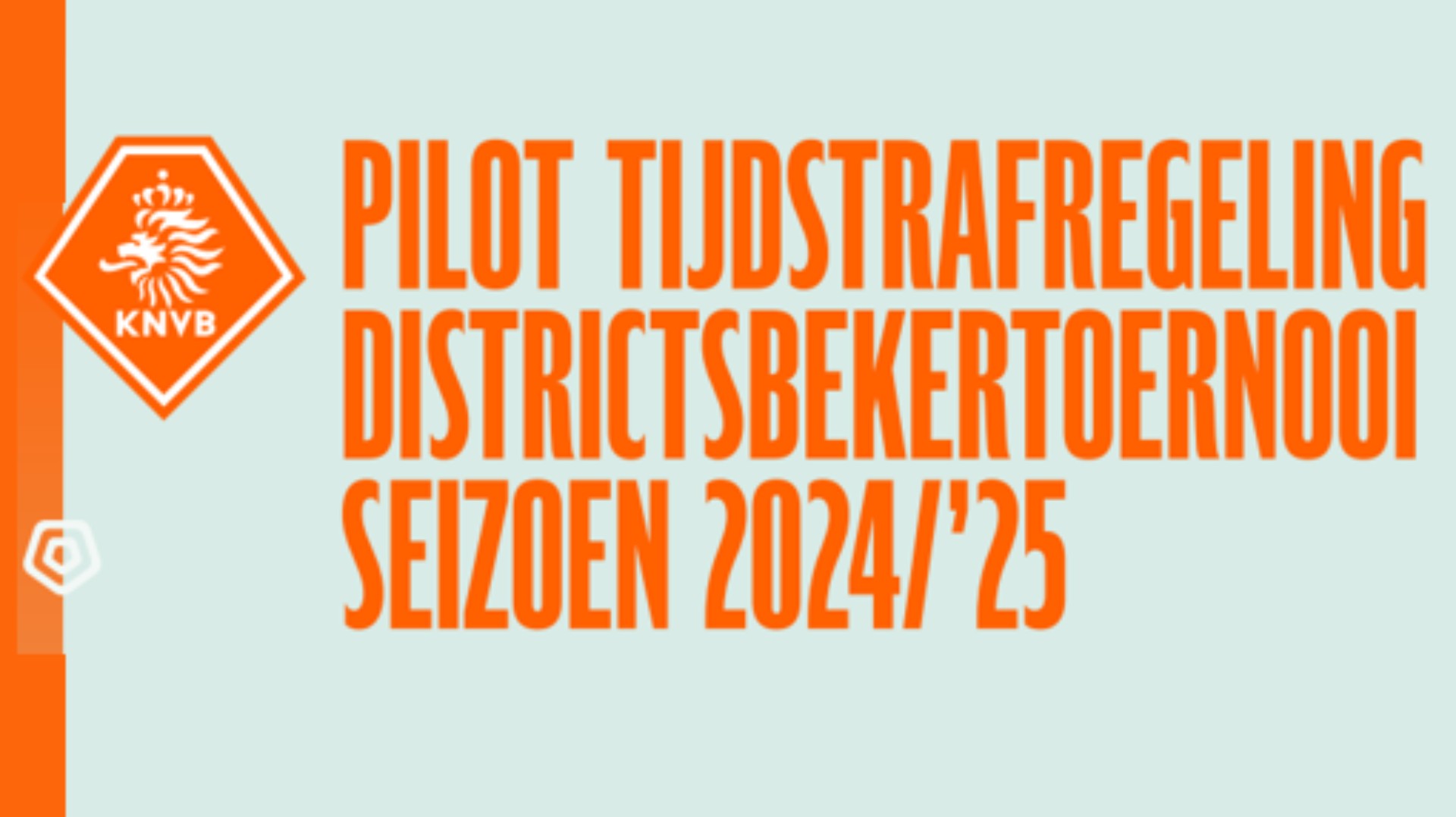 Dit seizoen gaat er in de districtsbeker (standaard mannen A-categorie) een pilot van start met een tijdstrafregeling. Vanaf de 1/8e finale moet een speler die een gele kaart ontvangt, tien minuten plaatsnemen op de tijdstrafbank. Dit betekent dat deze pilot van toepassing is tijdens de wedstrijd van morgenavond als VVOG Harderwijk het voor de distrctsbeker opneemt tegen Go Ahead Kampen.