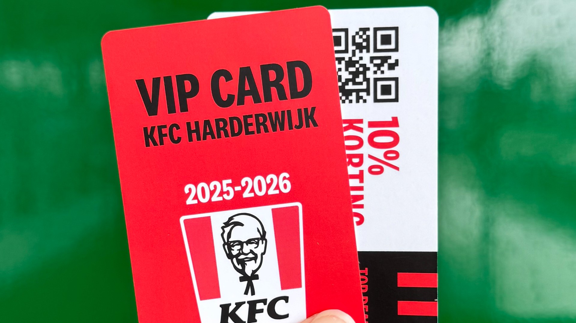 Ook dit seizoen heeft KFC Harderwijk weer voor alle leden van VVOG Harderwijk de VIP-Card beschikbaar gesteld! Deze actie loopt t/m 31 mei 2026 en is alleen geldig bij KFC Harderwijk.