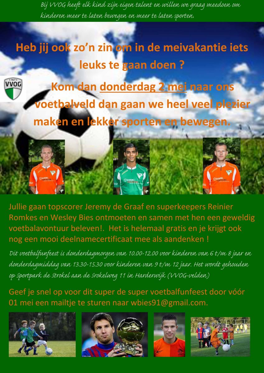 Jeremy de Graaf,Wesley Bies en Reinier Romkes organiseren op donderdag 2 mei een geweldig voetbalavontuur voor onze jeugd.
