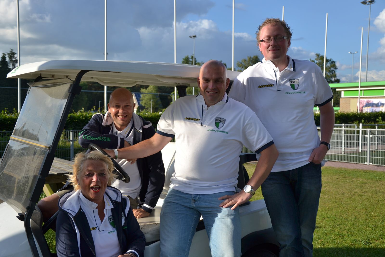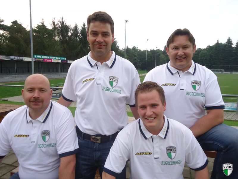 Dit zijn ze dan (van links naar rechts) Nelleke den Herder, Marnix de Heer, Goossen Luytjes en Klaas Uit de Bosch. Tezamen vormen zij de nieuwe jeugdcommissie. Vele jeugdleden zullen Goossen en Klaas kennen want ze stonden op de zaterdagmorgen heel wat patat te bakken en jongens en meisjes te helpen die soms maar moeilijk konden kiezen uit de VVOG versnaperingen. Goossen en Klaas zijn zo'n beetje onafscheidenlijk en het is dat ze uiterlijk nogal verschillen anders zou je denken dat ze een eeneiige tweeling zouden zijn. Wij zijn natuurlijk heel blij dat ze de kar willen gaan trekken als voorzitter en vice voorzitter en PR man. Daar kunnen we natuurlijk wel op vertrouwen want in het zakelijk leven hebben zij hun sporen meer dan verdiend.