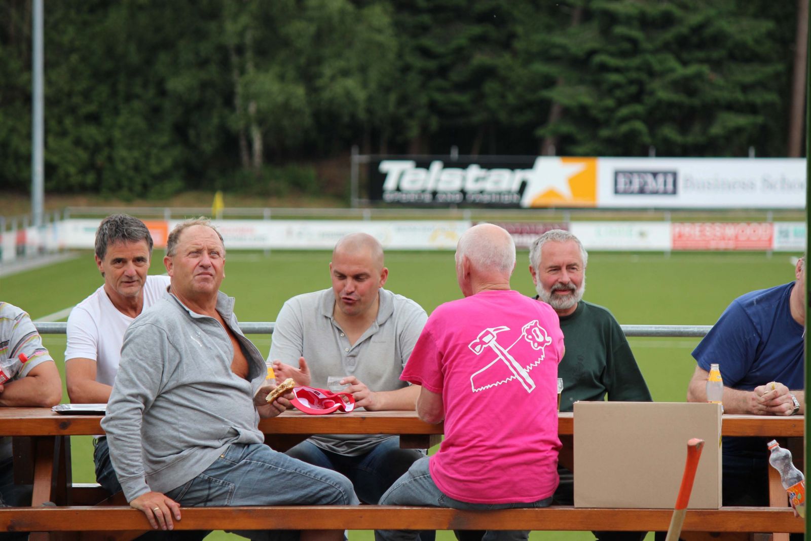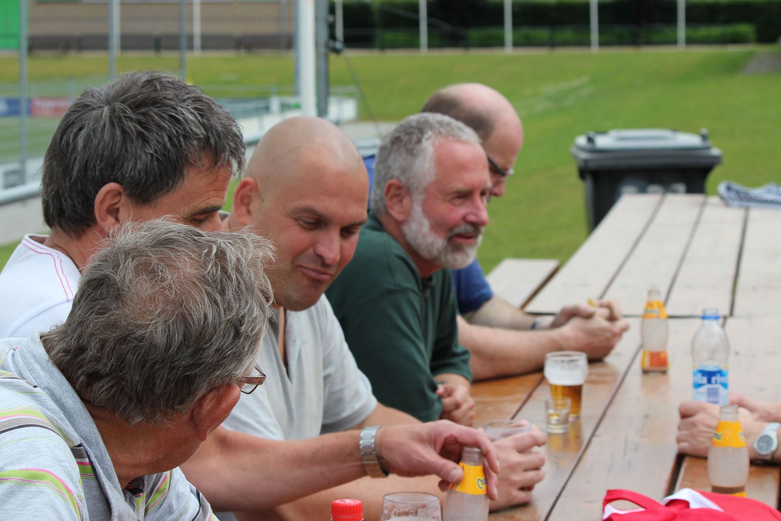 Vele getrouwen -onder wie technisch en minder technisch getalenteerden- togen weer richting het sportpark om eerst hun gespeelde woede te bekoelen op het slopen van enige accommodatieattributen. Getuige de foto is dat heel aardig gelukt want binnenn no time was het complete oude kassagedeelte ontmanteld en de container vol. Dat was, zeg maar fase 0.