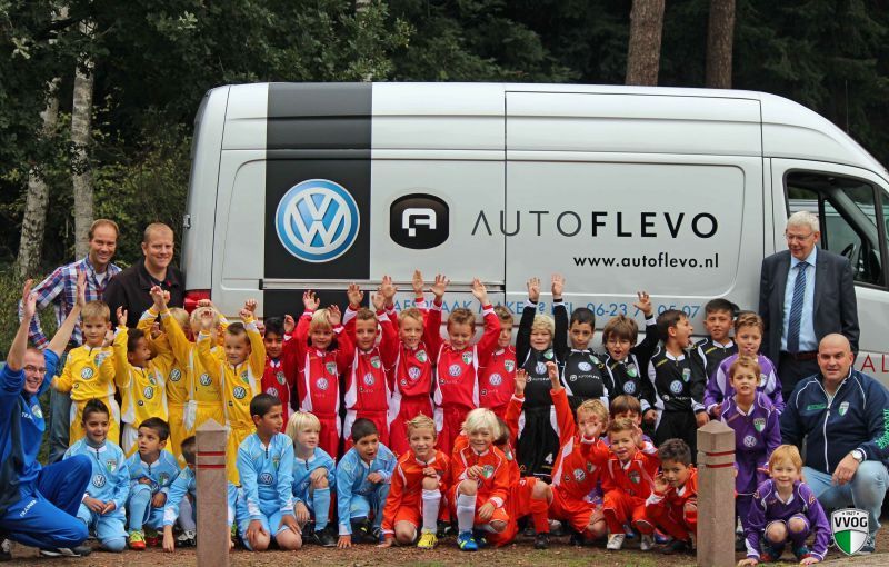 Voor de voetballertjes van de Auto Flevo League wordt dan ook de kleding uitgereikt. De Dolfijntjes voetballen gewoon in eigen kleding. Daarna is het tijd om lekker te gaan voetballen.