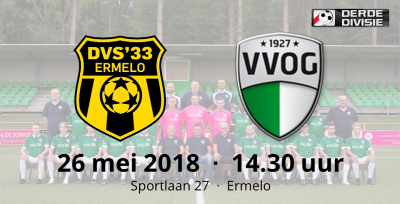 DVS'33 is zaterdag mede afhankelijk van de uitkomst van de wedstrijd Scheveningen – Jong FC Volendam en zelf, van de uitslag, in de derby tegen VVOG. VVOG komt naar Ermelo om de strijd aan te gaan met de thuisclub. Het eerste treffen tussen DVS’33 en VVOG dit seizoen, 13-01-2018 op de Strokel, de thuishaven van VVOG, werd een dik verdiende 6-0 overwinning voor de Ermeloërs. Die 6-0 nederlaag wordt in het Harderwijkse nog steeds, als heel vervelend gevonden en dat is dan zacht uitgedrukt.