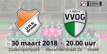 ONS Sneek staat in de stand nog steeds op de veertiende plaats, dicht tegen de gevarenzone aan. De competitiestand laat zien dat het, vooral in de onderste regionen, voor een aantal ploegen, dus ook voor ONS Sneek, duimendraaien gaat worden. ONS Sneek gaat voor de volle winst tegen VVOG, dat is gezien de plaats in de competitiestand, een nogal vanzelfsprekend zaak.