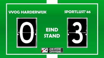 VVOG Harderwijk heeft de negatieve reeks tegen Sportlust van vier nederlagen niet kunnen doorbreken. Het werd een 0-3 nederlaag. Ofschoon de mannen uit Woerden beter waren was de uitslag wel wat geflatteerd. Alle doelpunten kwamen voort uit strafschoppen. Met name het doelpunt uit de eerste strafschop gegeven door scheidsrechter Hardeman was wel zeer dubieus.